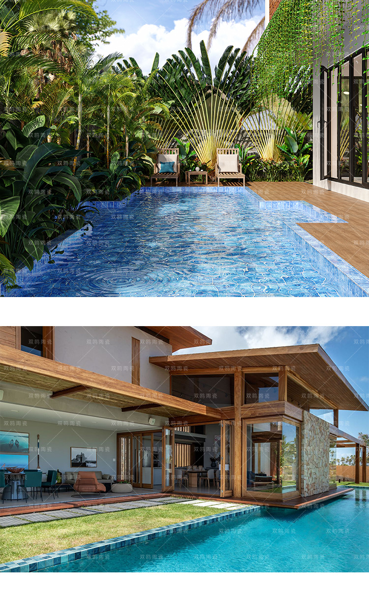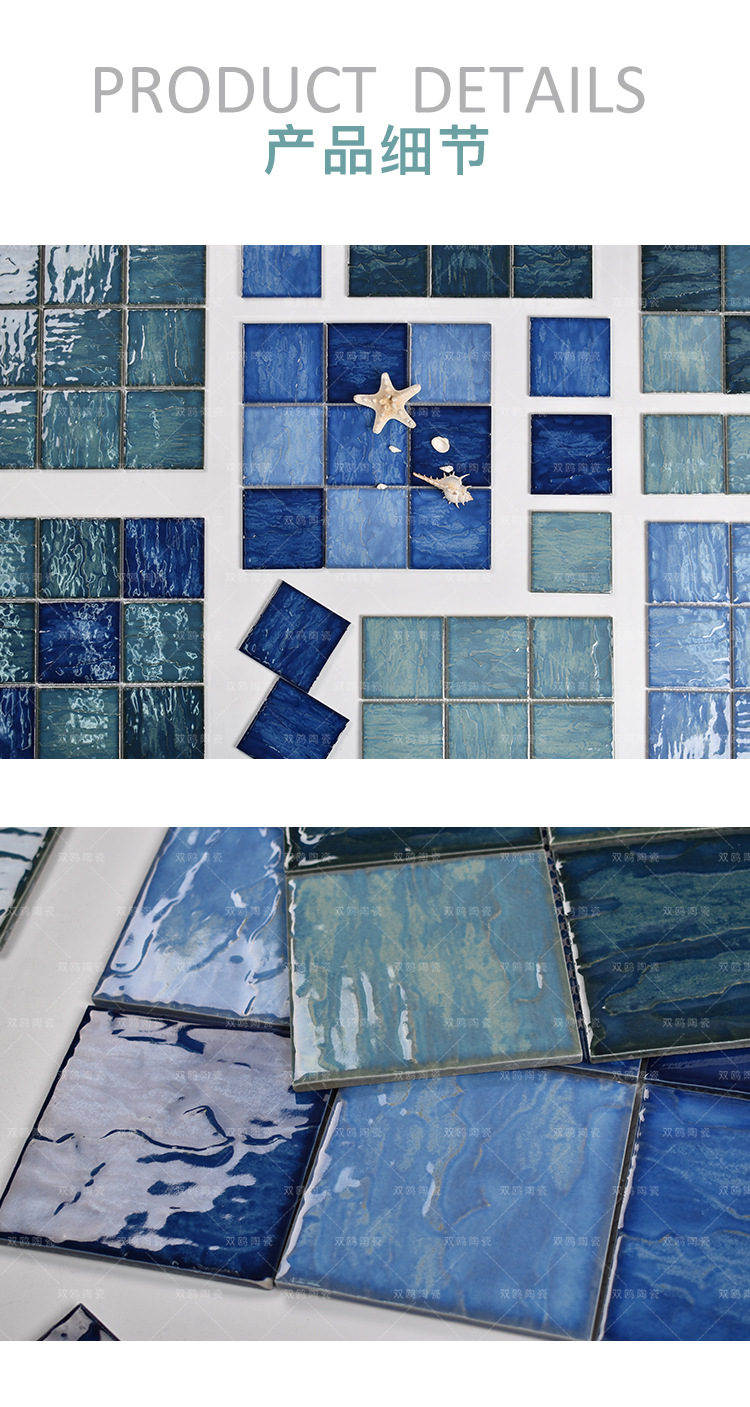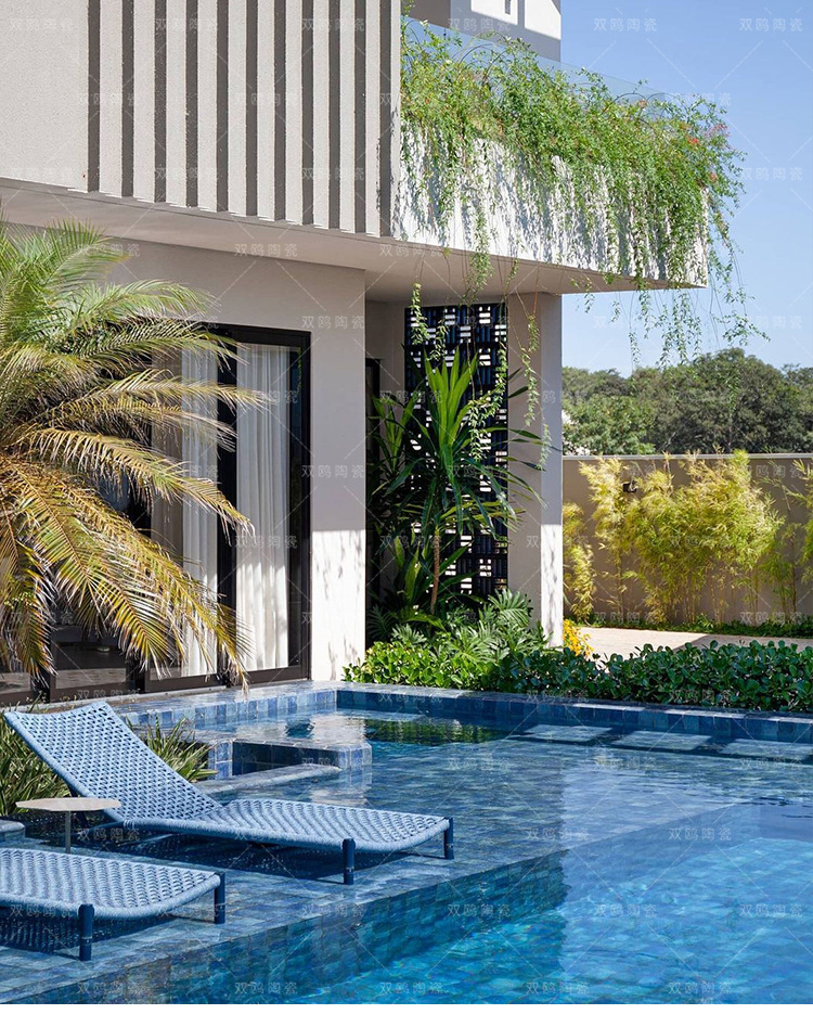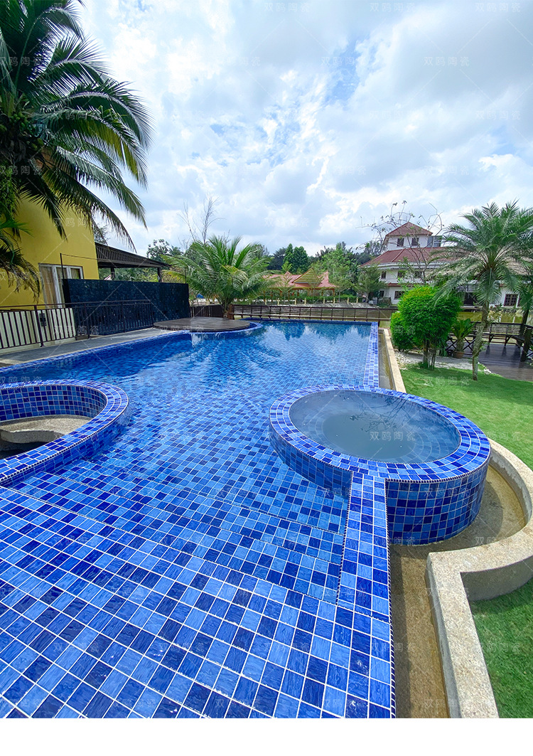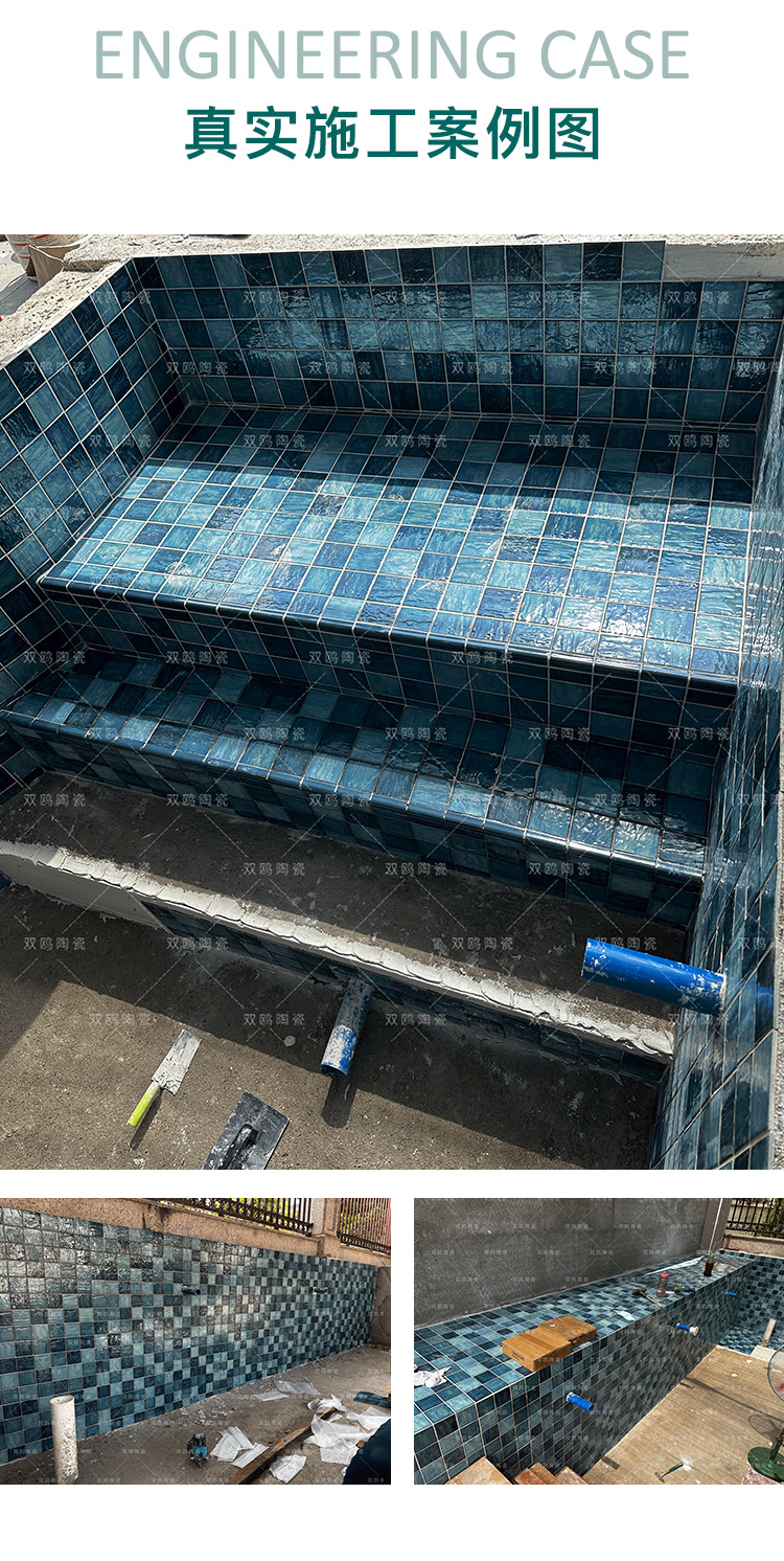 Hồ bơi khảm gốm lồi lõm màu xanh hồ bơi homestay hồ bơi suối nước nóng hồ tắm gạch ốp tường và sàn phòng tắm