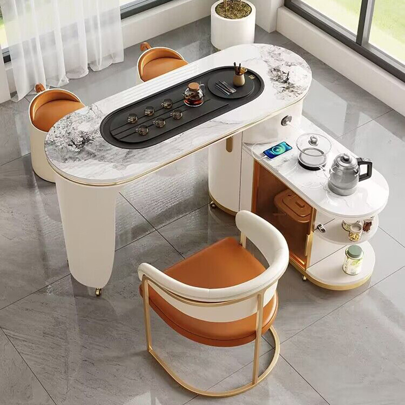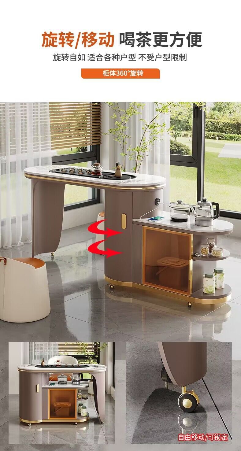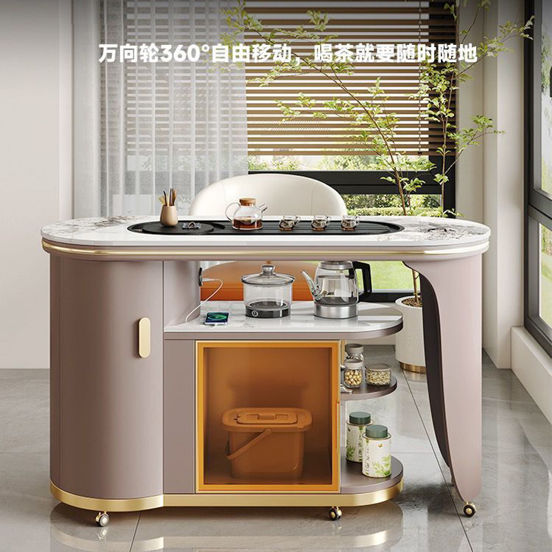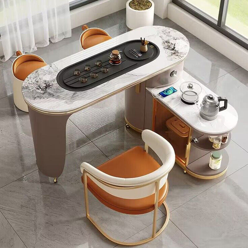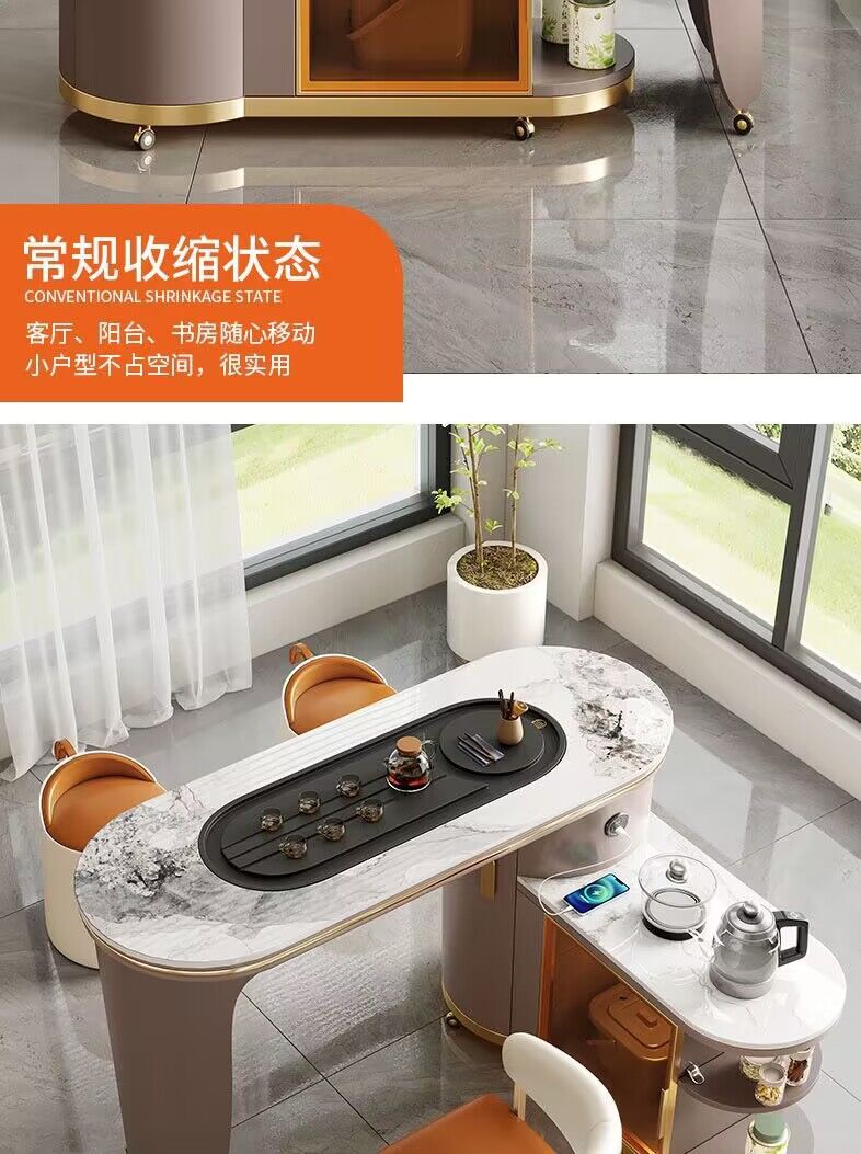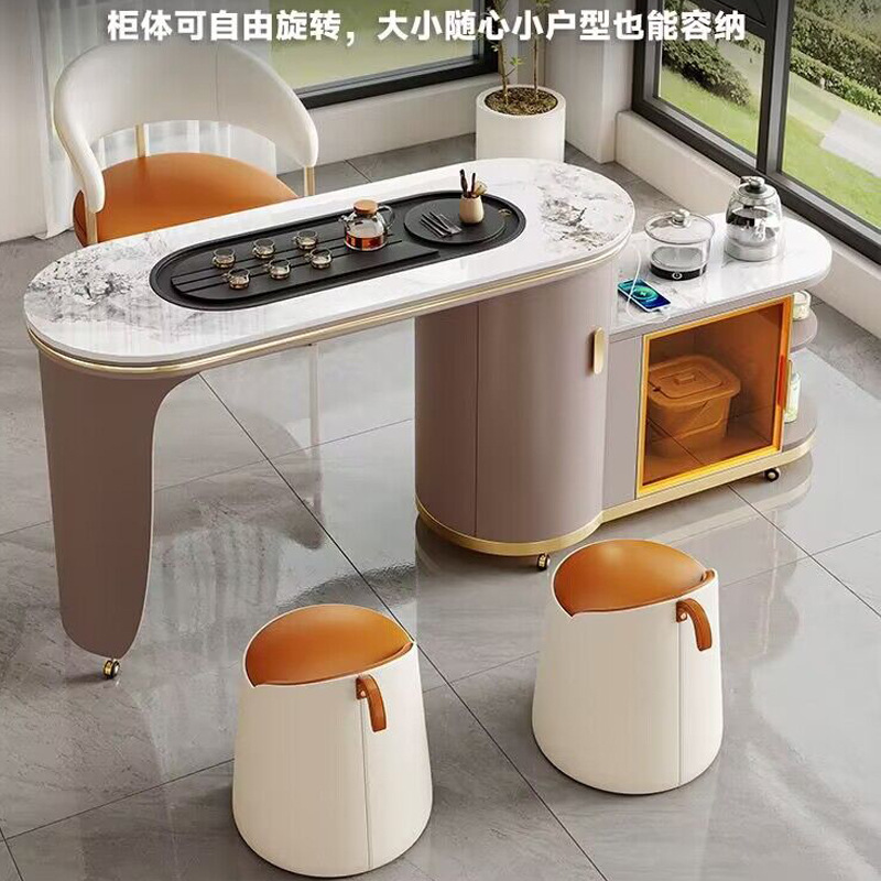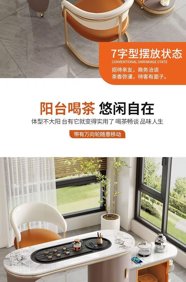 Hộ gia đình di động có thể xoay bàn trà nhỏ căn hộ nhỏ ban công bàn trà ghế kết hợp Đẹp sang trọng hiện đại đá tấm bàn trà để pha trà