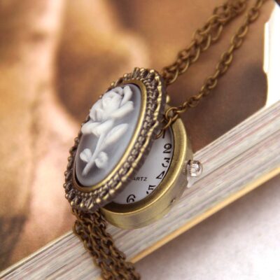 Hoa hồng làm đẹp đầu chân dung phụ nữ đồng hồ bỏ túi đồng hồ vòng cổ/đồng hồ dây chuyền áo len/phụ nữ treo đồng hồ dây chuyền dài nhà máy bán trực tiếp