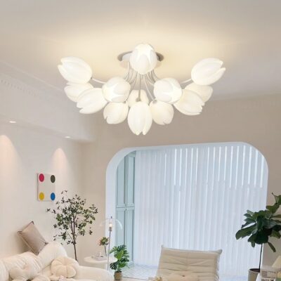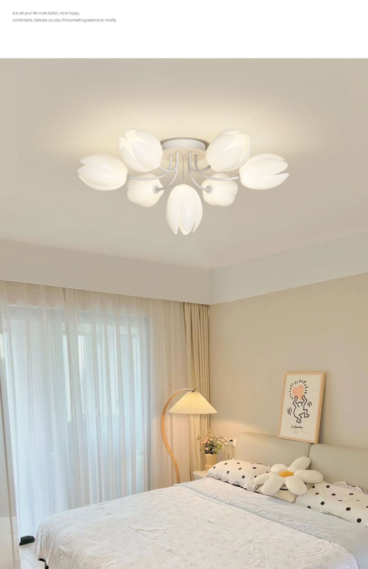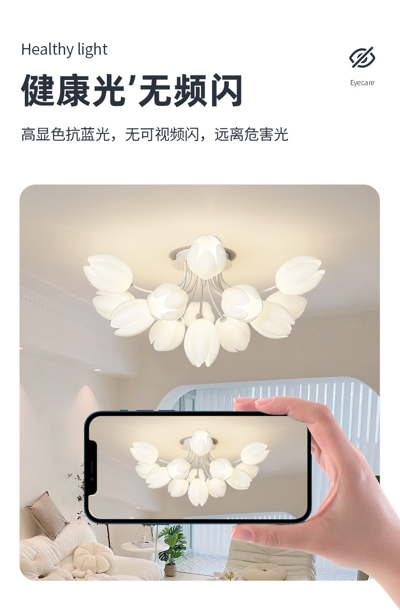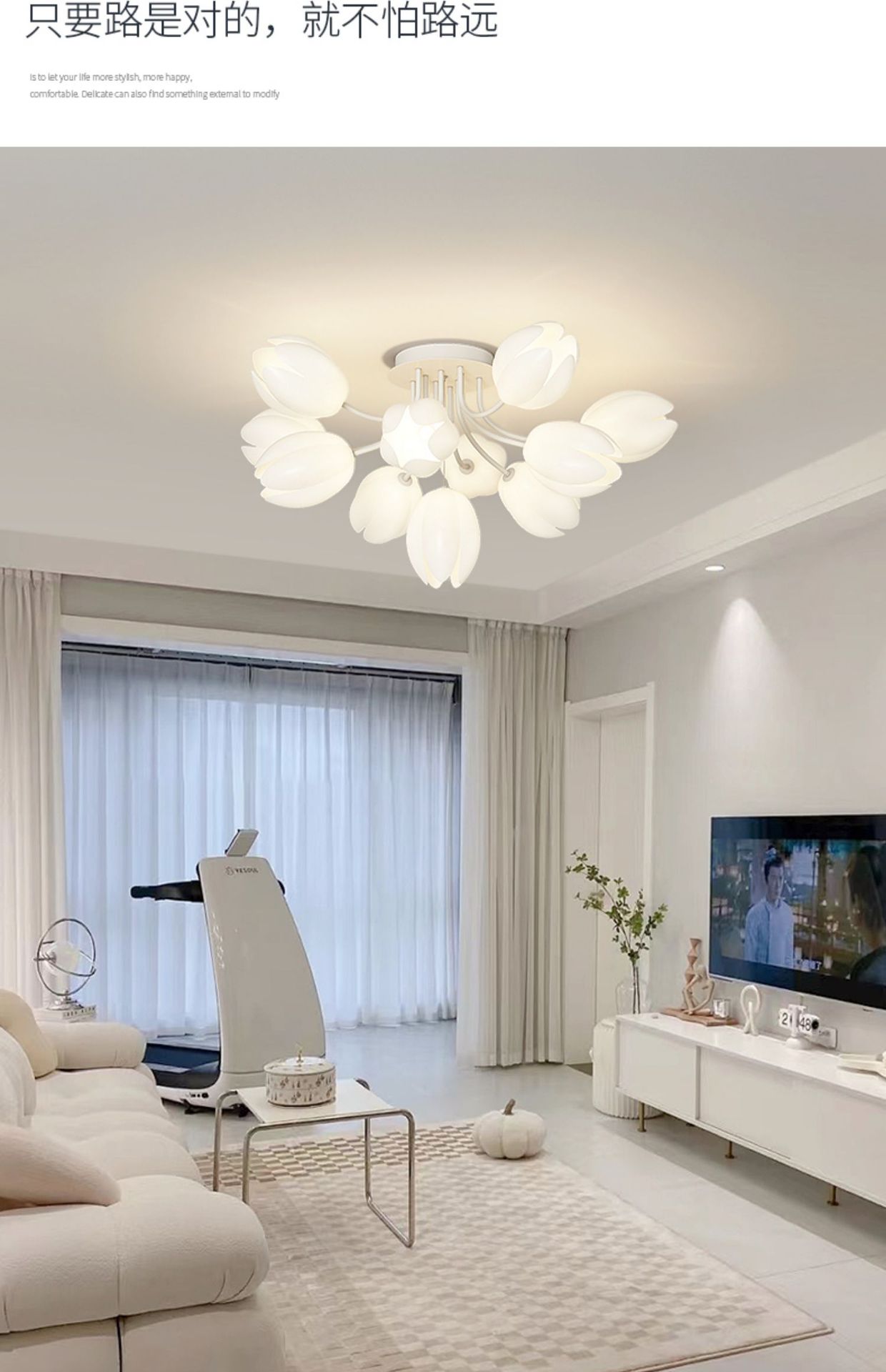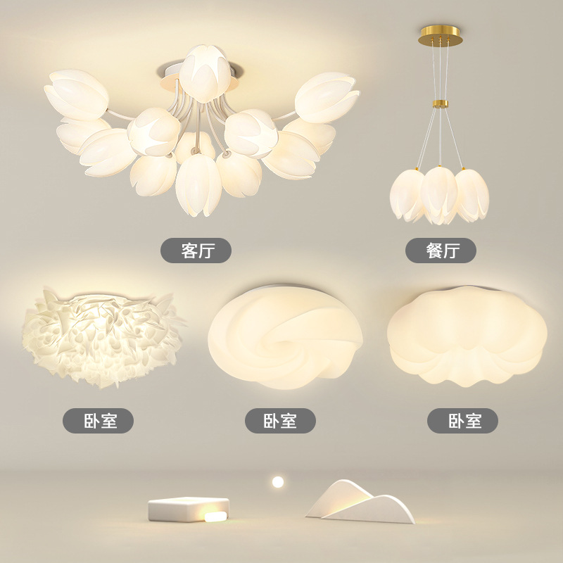 Hoa mộc lan kem phong cách phòng khách đèn chính Pháp hoa tulip ánh sáng sang trọng Bắc Âu đèn trần cả nhà gói kết hợp