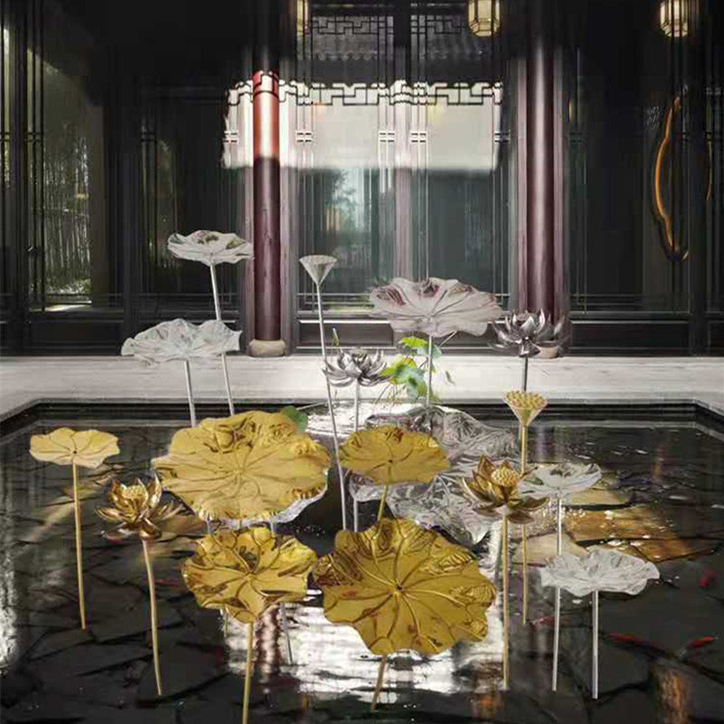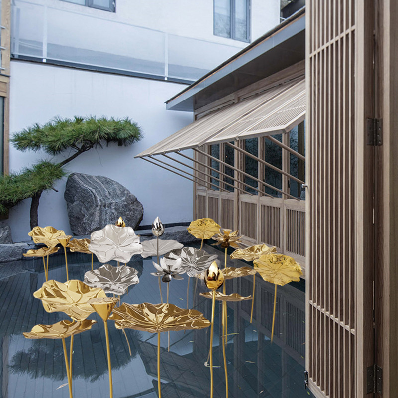 Hoa sen bằng thép không gỉ sắt rèn hoa sen lá điêu khắc sàn trang trí hồ bơi ngoài trời câu lạc bộ khách sạn kim loại trang trí mềm