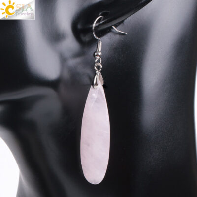 天然宝石耳环耳坠 切角扁长切面水滴耳环女 几何耳坠女性长款耳饰