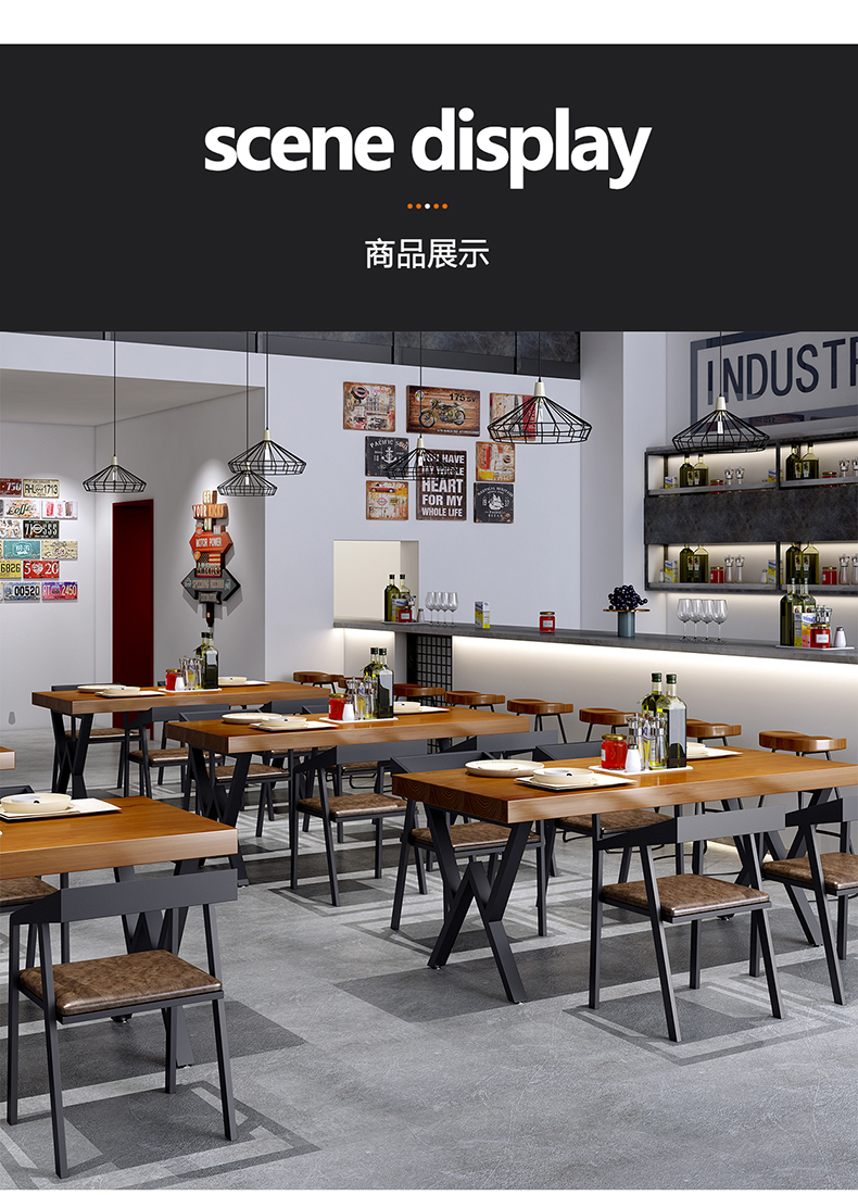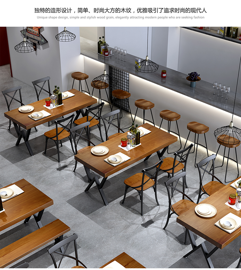 hoài cổ thanh thịt nướng thanh âm nhạc nhà hàng phong cách công nghiệp bàn ăn gỗ nguyên khối hình chữ nhật Lẩu cafe bàn ghế kết hợp