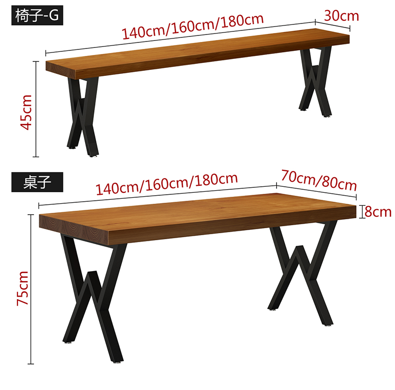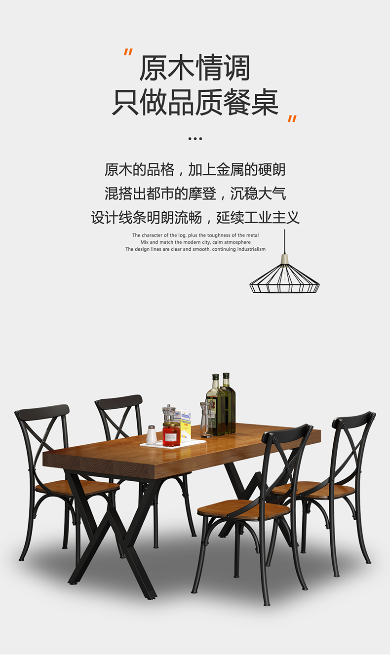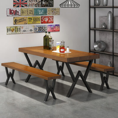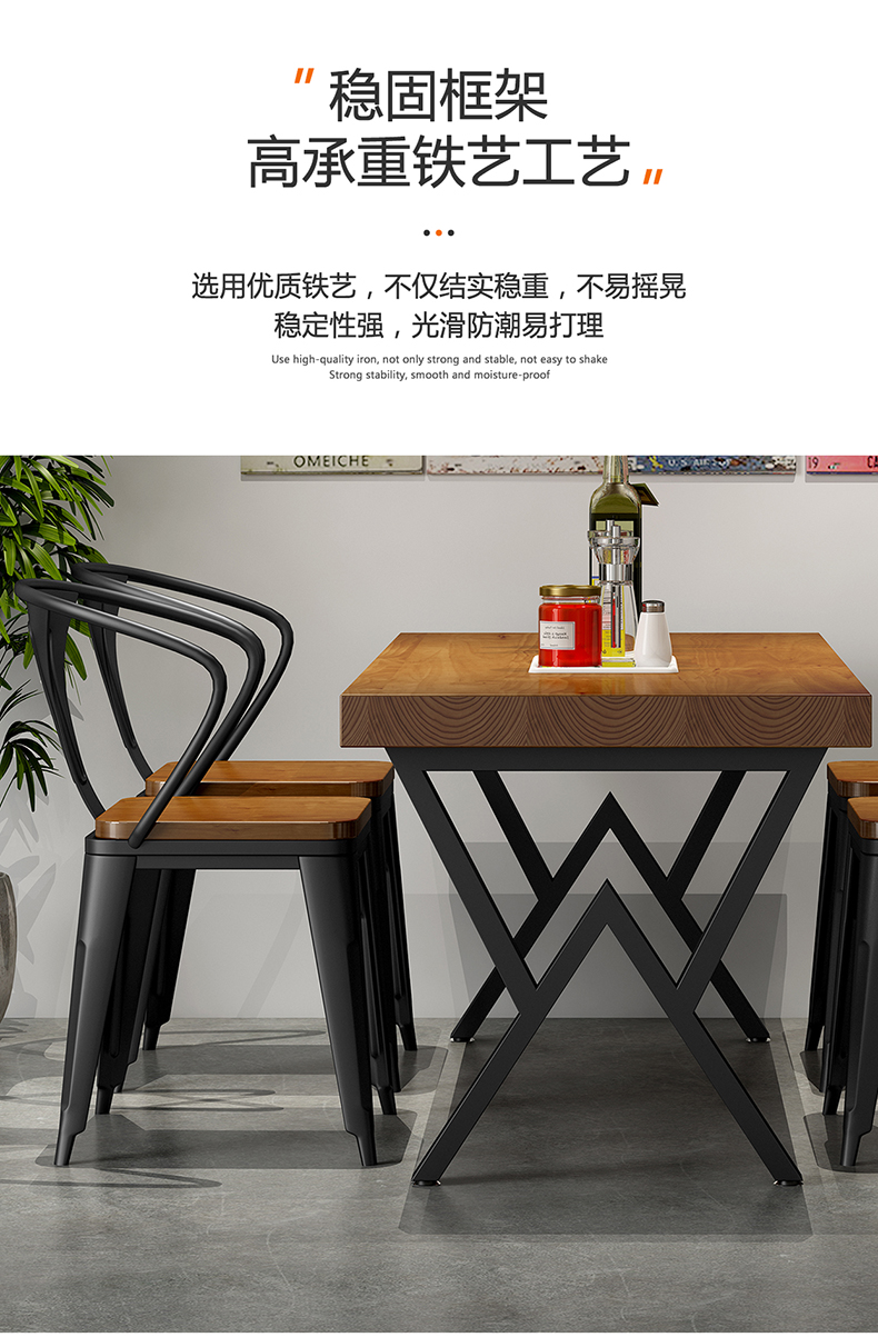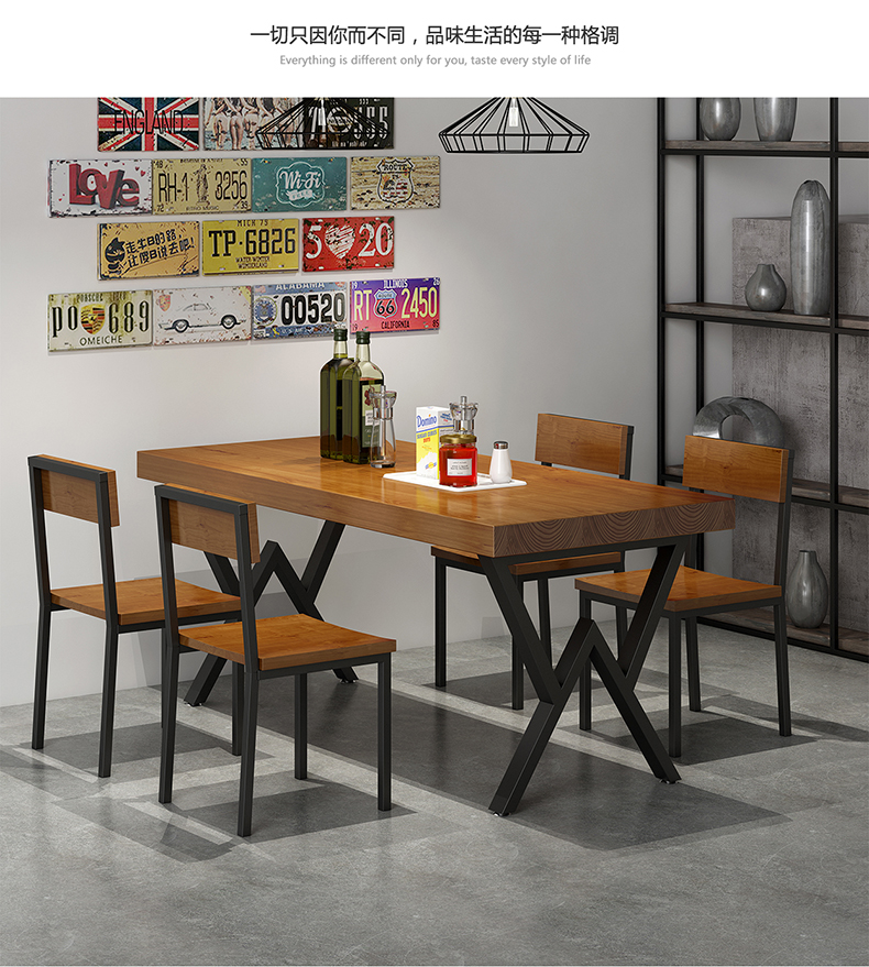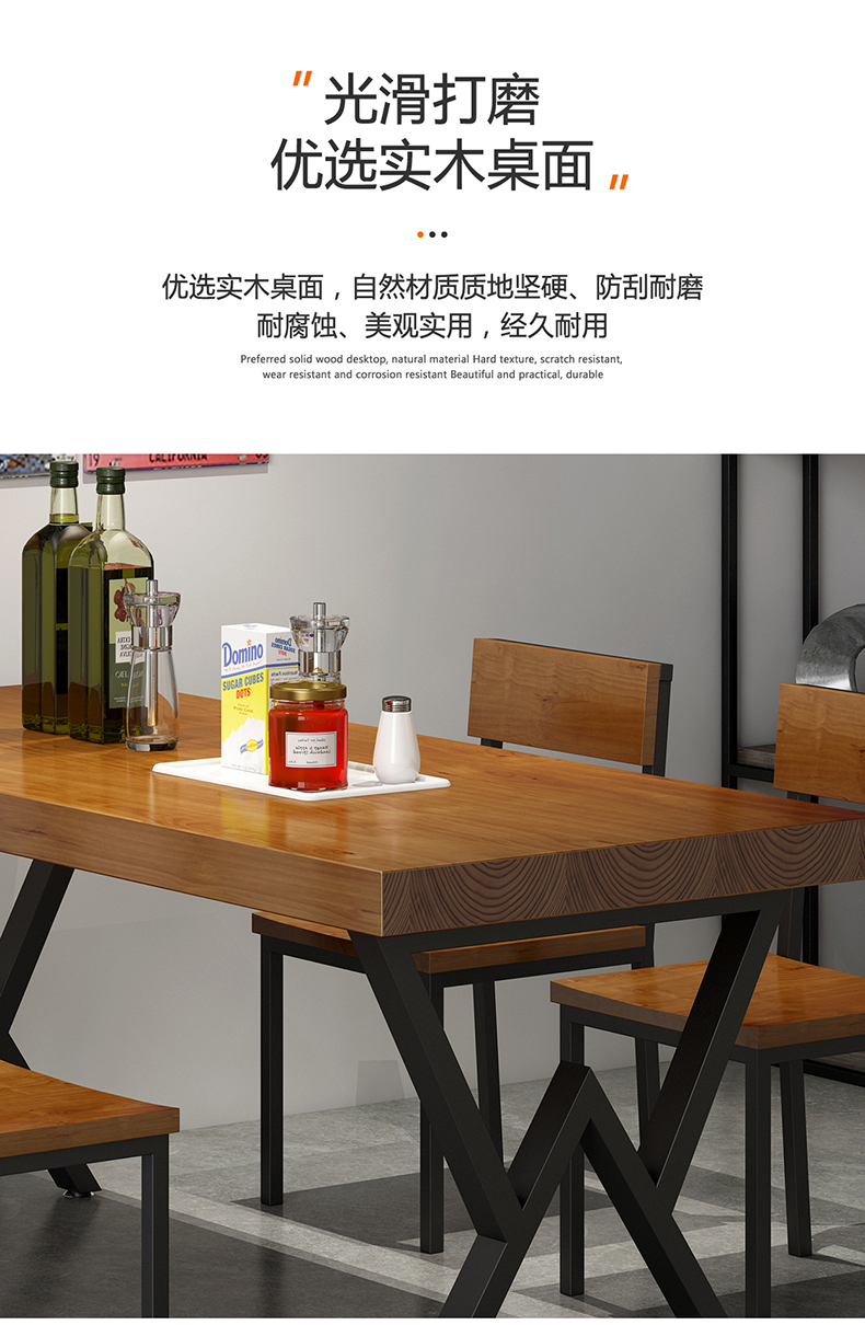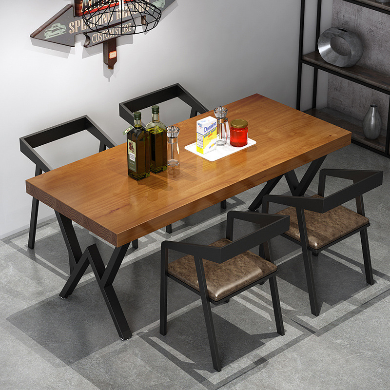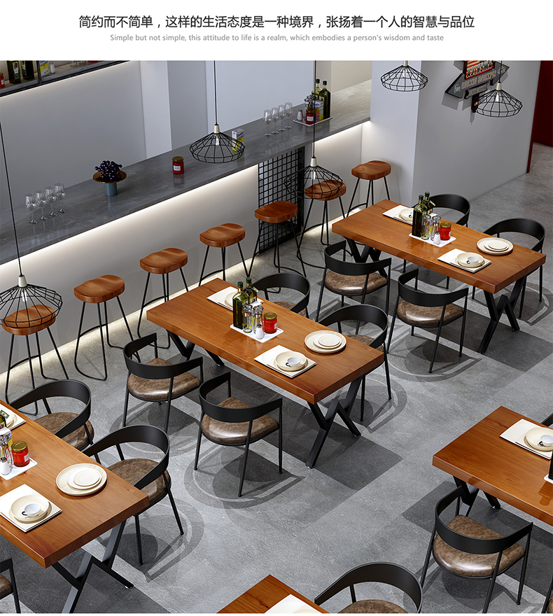 Retro thanh thịt nướng thanh âm nhạc nhà hàng phong cách công nghiệp bàn ăn gỗ nguyên khối hình chữ nhật Lẩu cafe bàn ghế kết hợp