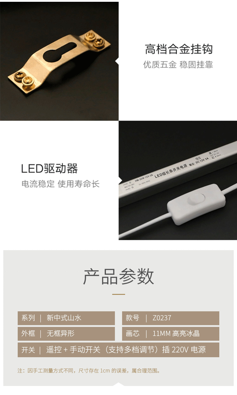 Hoa văn: Phong cảnh Số mảnh: một cặp Mã sản phẩm: Z0237 Thông số kỹ thuật: Z0237-1/Z0237-2/Z0237-2 Chất liệu lõi: màng pha lê Cho dù có bản quyền hoặc bằng sáng chế: Không ) -Acrylic Thông thường (không ánh sáng, không ánh sáng) -Độc lập/(Chiều rộng 90cmX36cm Chiều cao)-Đèn LED acrylic + Mô hình trình cắm [Công tắc điều khiển từ xa]-/(Rộng 120cmX48cm Chiều cao)-Đèn acrylic thông thường (Không có ánh sáng, Không có ánh sáng)-Độc lập / (chiều rộng 120cmX48cm chiều cao)-Đèn LED acrylic đèn + mô hình phích cắm [công tắc điều khiển từ xa] / (chiều rộng 150cmX60cm chiều cao) – mô hình thông thường acrylic (không có ánh sáng, không có ánh sáng) – một mình / (chiều rộng 150cmX60cm) – đèn LED acrylic + mô hình trình cắm [Công tắc điều khiển từ xa] /(Rộng 180cmX72cm cao)-Acrylic loại thông thường (không đèn, không sáng)-Đơn/(Rộng 180cmX72cm cao)-Đèn LED acrylic + mô hình trình cắm [Công tắc điều khiển từ xa]/(Rộng 180cmX72cm)-Đèn LED acrylic + Mô hình trình cắm [công tắc điều khiển từ xa] Không gian: Lối vào Phương pháp lắp đặt: Xử lý không khung Tùy chỉnh: Có Chất liệu khung bên ngoài: Hợp kim nhôm Phong cách: Tranh trang trí Trung Quốc mới Quy trình: In phun Thể loại: Tranh trang trí/tranh treo
