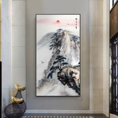 Hoan nghênh cây thông phiên bản đứng hiên hành lang lối đi tranh trang trí phòng khách phong cách Trung Quốc mới tranh treo tranh phong cảnh tranh Trung Quốc thư pháp và tranh bán buôn