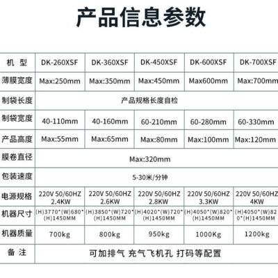 Mức độ tự động hóa: Hoàn toàn tự động Mã sản phẩm: 100617210 Thương hiệu: Dikai Công suất: 2.4 Vật liệu đóng gói: Phim Model: DK-250 Thông số kỹ thuật: DK-360/DK-450/Máy đóng gói gối/Niêm phong bốn mặt DK-240XSF-4/Loại bánh xích DK-250X—-DK-800X/Ba servo DK-250X—-DK-800X/Ngang đỉnh DK350 B—DK-450D/Đáy ngang DK250XB—DK-350XD/Đáy pittông Đỉnh DK-450WS—DK-600WS/Đáy pittông DK-350WS—DK-450WS/Đáy pittông DK-350WS—DK-450WS Các ngành áp dụng: quà tặng, thủ công mỹ nghệ/thực phẩm/quần áo/hàng dệt gia dụng/hóa chất/đồ chơi/ phục vụ / hóa chất hàng ngày / thuốc lá và rượu / thuốc / phần cứng, máy móc / Phần cứng, Máy móc Tiếp thị: Sản phẩm mới Loại vật liệu: Rắn Số đơn đặt hàng: 10061721AA Chiều rộng màng đóng gói: 260 Kích thước túi: 330 Nhãn riêng được ủy quyền: Có Trọng lượng: 350 Chức năng: Đóng gói / Niêm phong / Hỗ trợ đóng gói / Mã hóa, In / Dán nhãn / Nhận dạng mã vạch, In / Gói / Gói Dịch vụ sau bán hàng: Cài đặt tại chỗ miễn phí, bảo hành hai năm, bảo trì trọn đời Tốc độ đóng gói: 250 Đối tượng áp dụng: Hạt Điện áp: 220 Xử lý và tùy chỉnh: Có Kích thước: (L)3770X(W)670X(H)1450 Có xuất khẩu riêng để cung cấp xuyên biên giới hay không: có Loại bao bì: túi