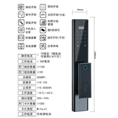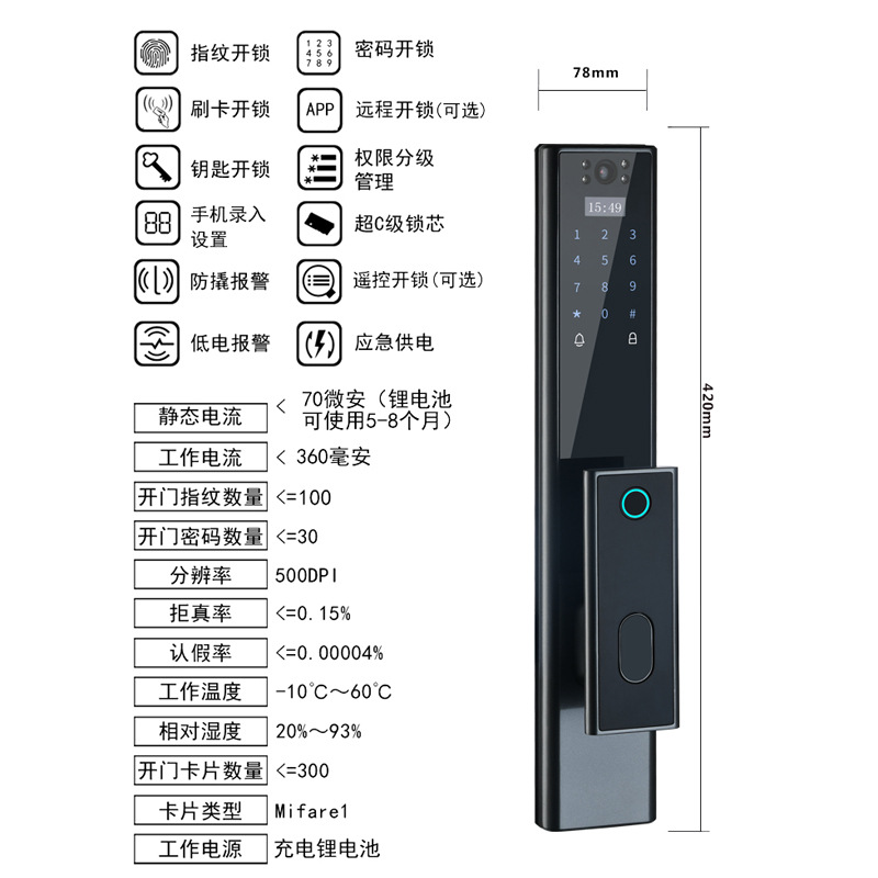 Dung lượng lưu trữ vân tay: 100 Mã sản phẩm: Dongfang No.2 Mới Thương hiệu: Jushi Smart Tuổi thọ: 50000000 Nguồn điện: AC Model: Dongfang No.2 Mới Thời gian quét <: 0,5 Phạm vi áp dụng: Cửa chống trộm/Cửa thép không gỉ /Cửa đồng/Cửa gỗ Thông số kỹ thuật: Tiêu chuẩn Được trang bị kiểu cơ bản/mẫu mắt mèo/Mẫu cơ bản Tuya WIFI/Mẫu cơ bản Tuya zigbee/Mẫu mắt mèo Tuya zigbee/khóa trang trí (khóa giả)/khóa trang trí (khóa giả) Tỷ lệ nhận dạng sai <: 0,00004 Có giao hàng tận nơi hay không: có giao hàng lên lầu Cung cấp dịch vụ lắp đặt: Không Phương pháp so sánh: Chức năng Nhiệt độ làm việc: -20--70 Độ ẩm làm việc: 20 ~ 93 Tùy chỉnh xử lý: Có Tỷ lệ từ chối <: 0,15 Cho dù xuyên biên giới xuất Nguồn cung cấp đặc biệt: Không Phong cách: Phong cách Trung Quốc mới: Số lần mở khóa lỗ nhìn trộm có thể nhìn thấy >:500000