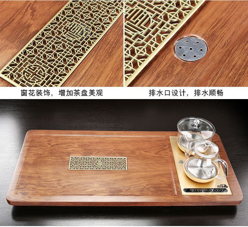 Hoàn toàn tự động Khay trà khay trà bộ ấm trà hộ gia đình Bộ bàn trà gỗ chắc chắn trà văn phòng cảm ứng