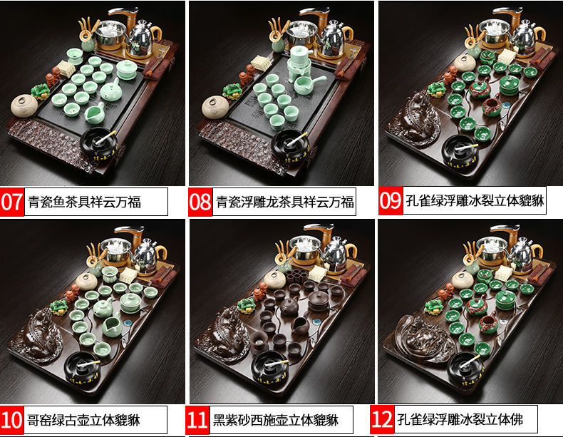 Hoàn toàn tự động kung fu bộ trà bộ lớn một nhà bộ hoàn chỉnh cát tím khay trà bằng gỗ rắn ấm trà gốm sứ tách trà bàn trà