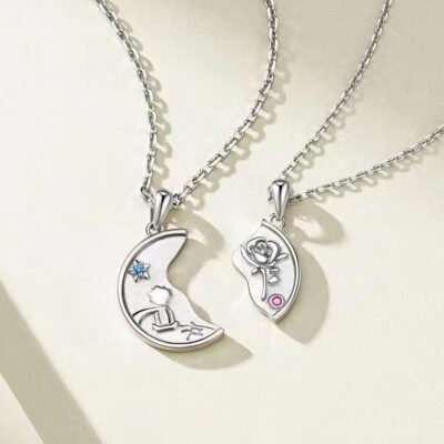Hoàng Tử Bé Và Hoa Hồng Cặp Đôi Vòng Cổ Thích Hợp Sang Trọng Epoxy Khảm Chuỗi Xương Đòn Quà Tặng Sinh Nhật Cho Bạn Gái