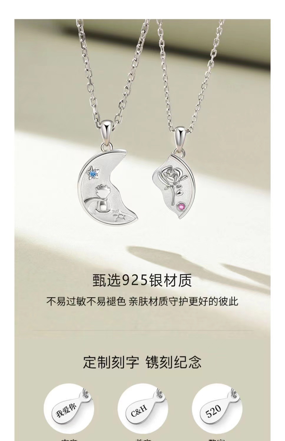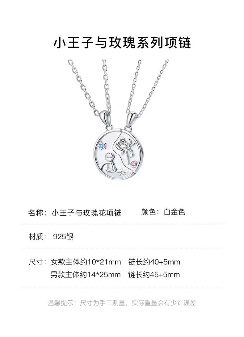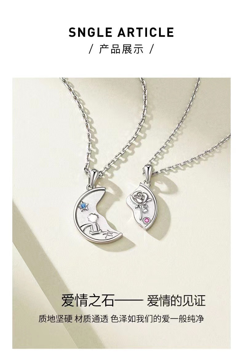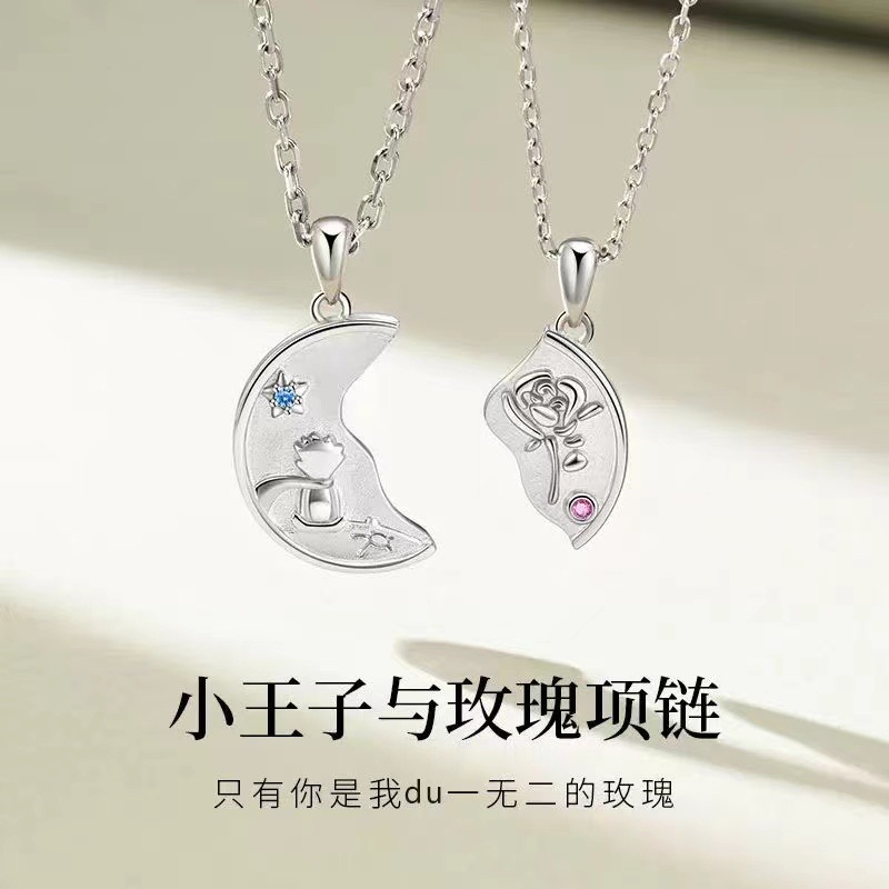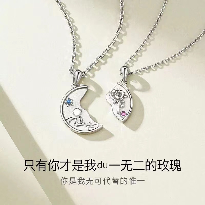 Hoàng Tử Bé Và Hoa Hồng Cặp Đôi Vòng Cổ Thích Hợp Sang Trọng Epoxy Khảm Chuỗi Xương Đòn Quà Tặng Sinh Nhật Cho Bạn Gái