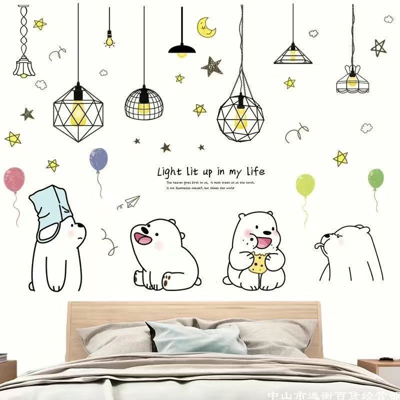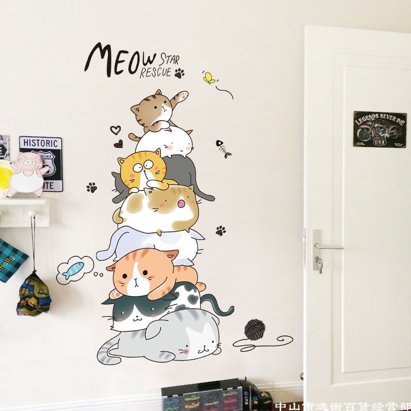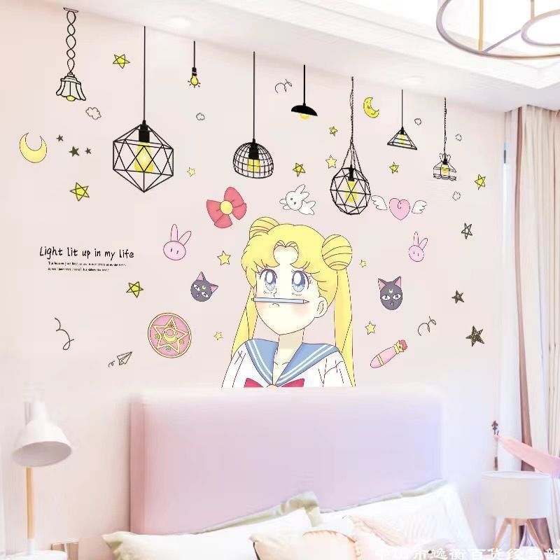 Hoạt Hình Dán Tường Phòng Ngủ Đầu Giường Phòng Khách Ký Túc Xá Tự Dán Dán Cô Gái Trái Tim Mẫu Giáo Trang Trí Ấm Áp Chống Thấm Nước
