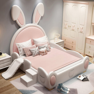 Hoạt Hình Sáng Tạo Giường Trẻ Em Bé Gái Giường Công Chúa Phòng Ngủ Lưới Đỏ Hồng Thỏ Đa Năng Có Lan Can Cho Bé Bằng Gỗ Chắc Chắn