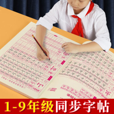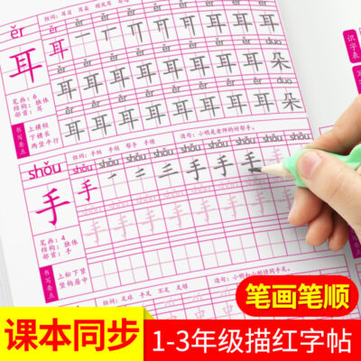 Học sinh tiểu học lớp một và lớp hai luyện tập sách vở tập một và tập hai bút chì Chữ Hán dò tìm sổ đỏ thực hành sách thư pháp