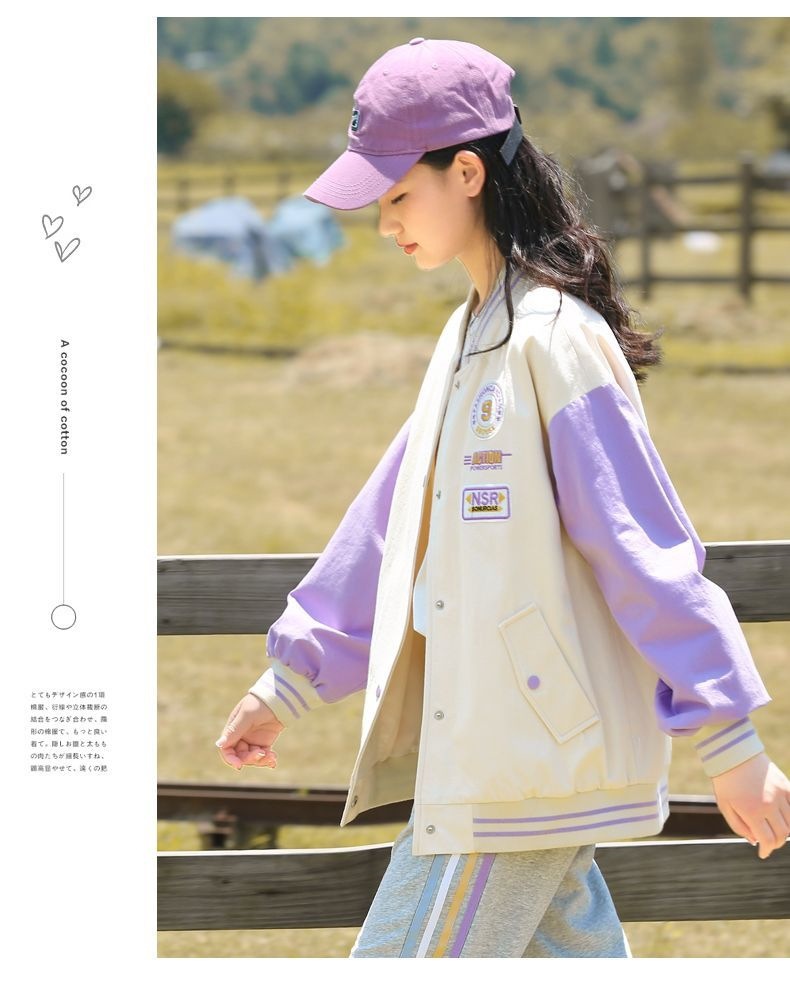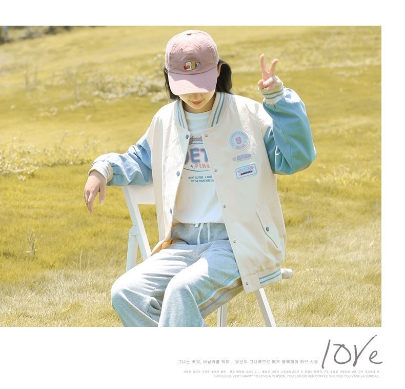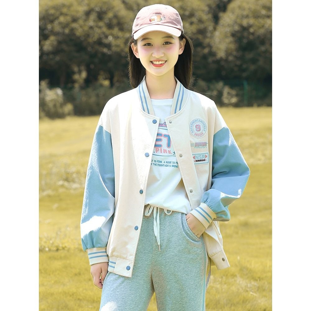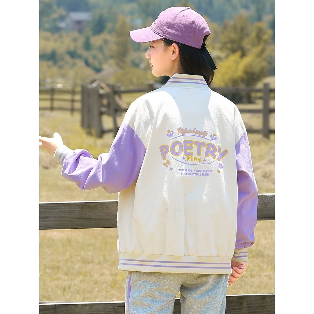 Học sinh trung học cơ sở mùa thu đồng phục bóng chày áo khoác bé trai lớn mùa xuân và mùa thu nữ sinh trung học đại học áo gió màu tương phản áo khoác