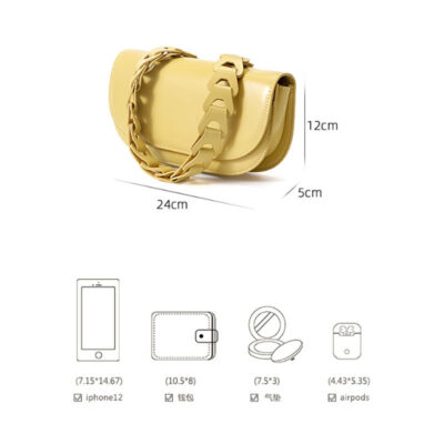 Kích thước hành lý: Trung bình Chất liệu lót: Cotton Polyester Mã sản phẩm: 2111 Thương hiệu: jindailin Cảnh áp dụng: Sắp xếp hàng ngày Màu sắc: Vàng/Trắng trắng/Trắng nhạt Xu hướng hành lý Phong cách: Túi baguette Loại túi bên ngoài: Túi ba chiều Mùa: Mùa hè của năm 2021 Độ cứng: Độ cứng vừa phải Chất liệu: Da Hình dạng hành lý: Hình bầu dục Cách mở: Túi có khóa nam châm Cấu trúc bên trong: Túi đựng điện thoại di động Các yếu tố phổ biến: Rỗng/Chỉ khâu/Chỉ khâu Phong cách: Thời trang xuyên biên giới Số gốc của dây đeo vai: đôi có hoặc không có lớp xen kẽ: không
