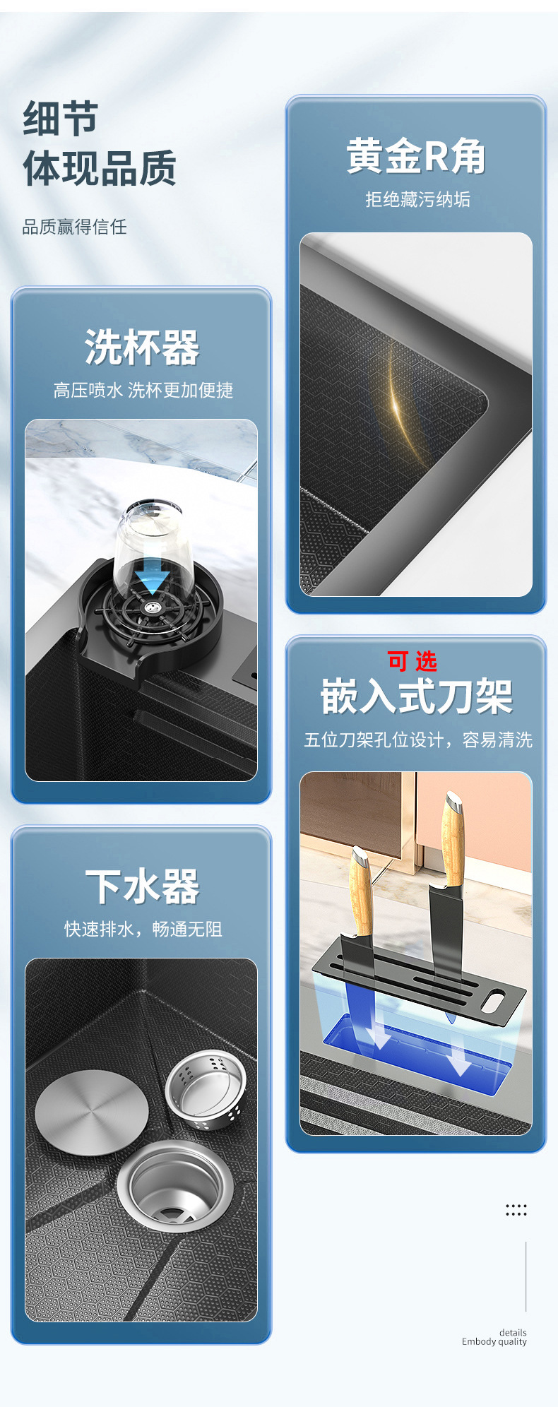 Sản phẩm nổi bật với các tính năng: ‘@Home nhà bếp chậu rửa chén tích hợp Chậu rửa bát âm bàn inox 304 chậu rửa bát âm bàn inox 304 bồn rửa tổ ong dập nổi nano bể đơn lớn. Quý khách có nhu cầu mua Chậu rửa nhập khẩu vui lòng liên hệ với chúng tôi để được tư vấn hỗ trợ. Dịch vụ mua hàng Trung Quốc sẽ hỗ trợ quý khách mua hàng từ nhà cung cấp và giao tới tận tay quý khách hàng..