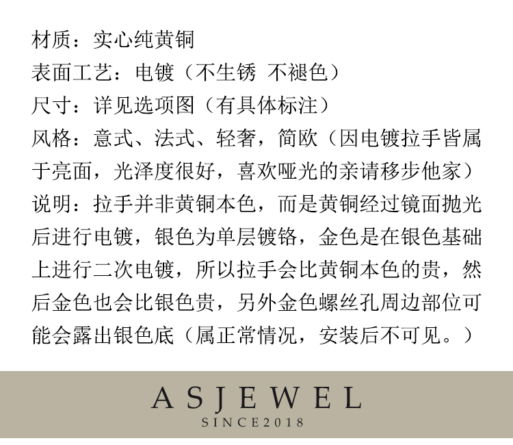 Hơn đồng thau Pháp Ý cao cấp đồng thau nguyên chất rắn chắc tay nắm mạ điện tủ quần áo vàng cánh cửa tủ giày tay dài