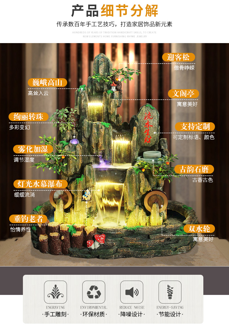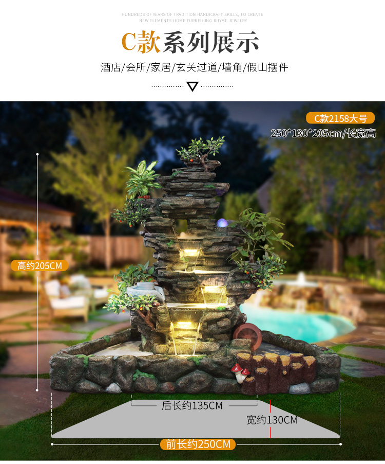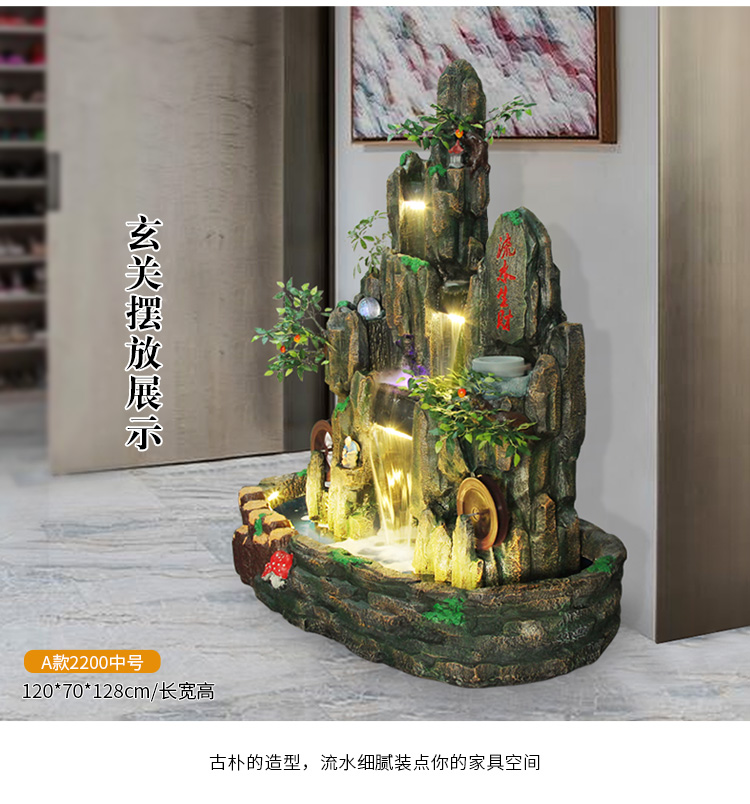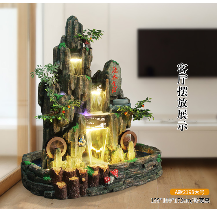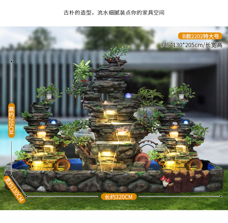 Hòn non bộ lớn chảy nước đài phun nước cảnh quan ngoài trời sân vườn cảnh quan ban công trang trí nhà ao cá Đồ trang trí bánh xe phong thủy