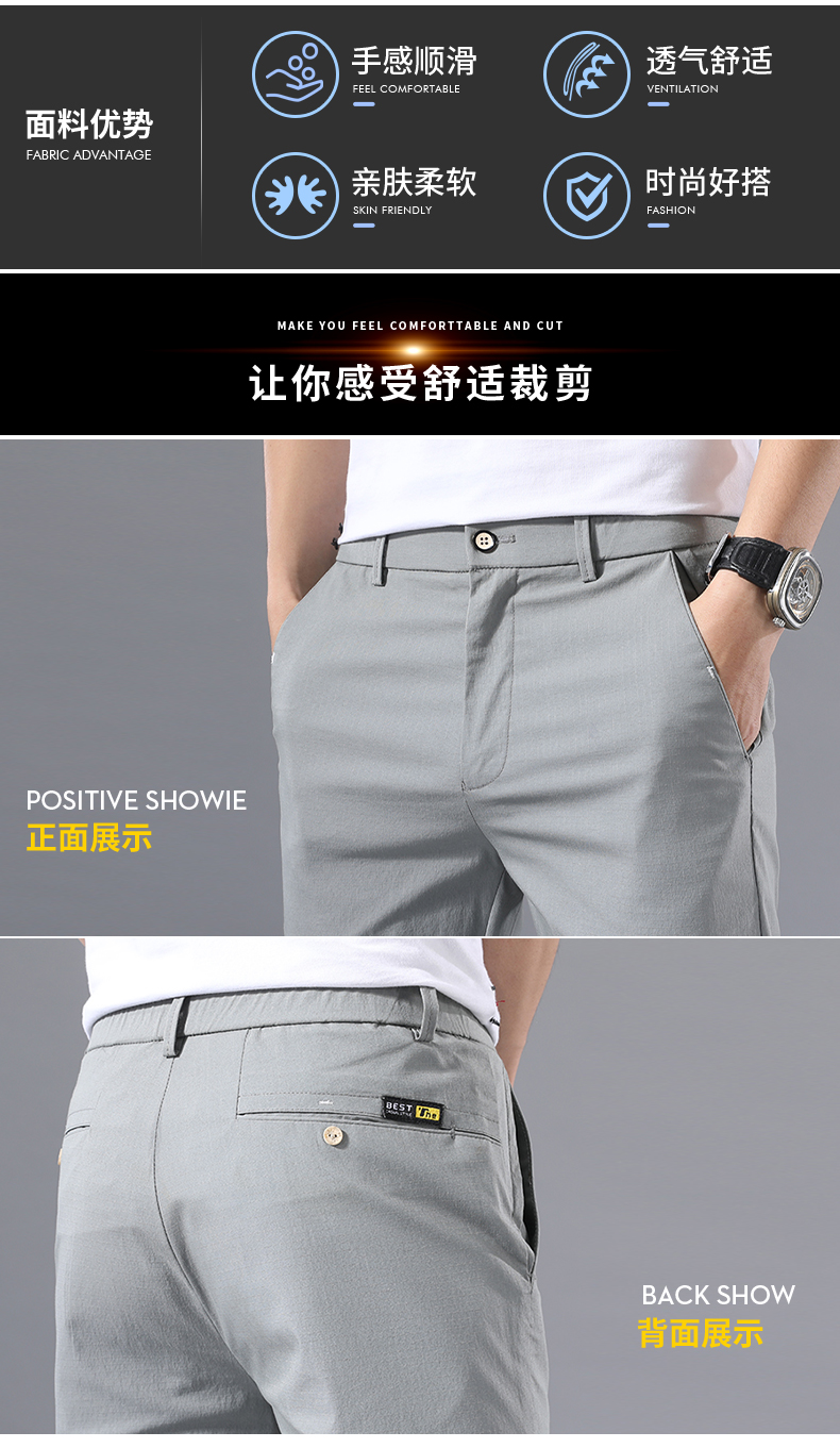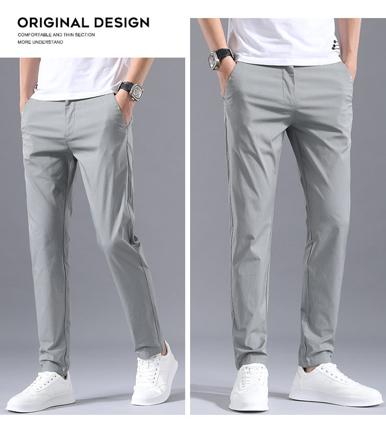 Hồng Kông cao cấp thương hiệu băng lụa quần âu nam mỏng phù hợp với mùa hè 2022 quần nam mỏng đàn hồi quần tất phù hợp
