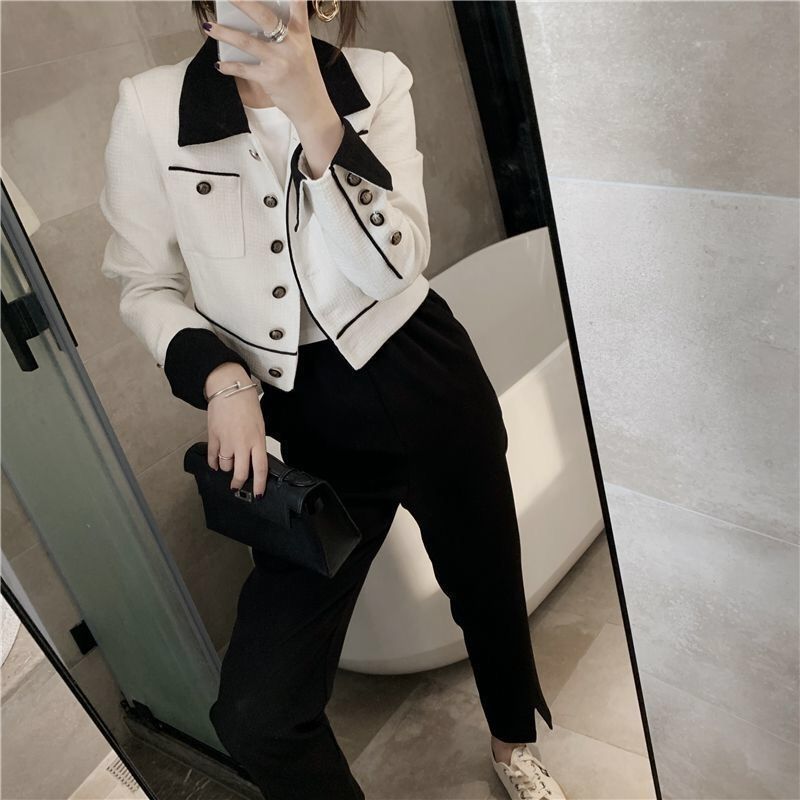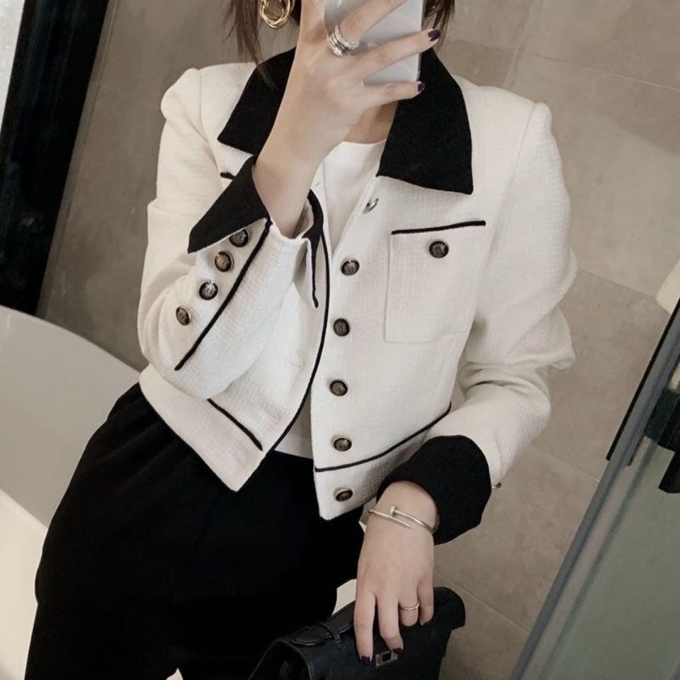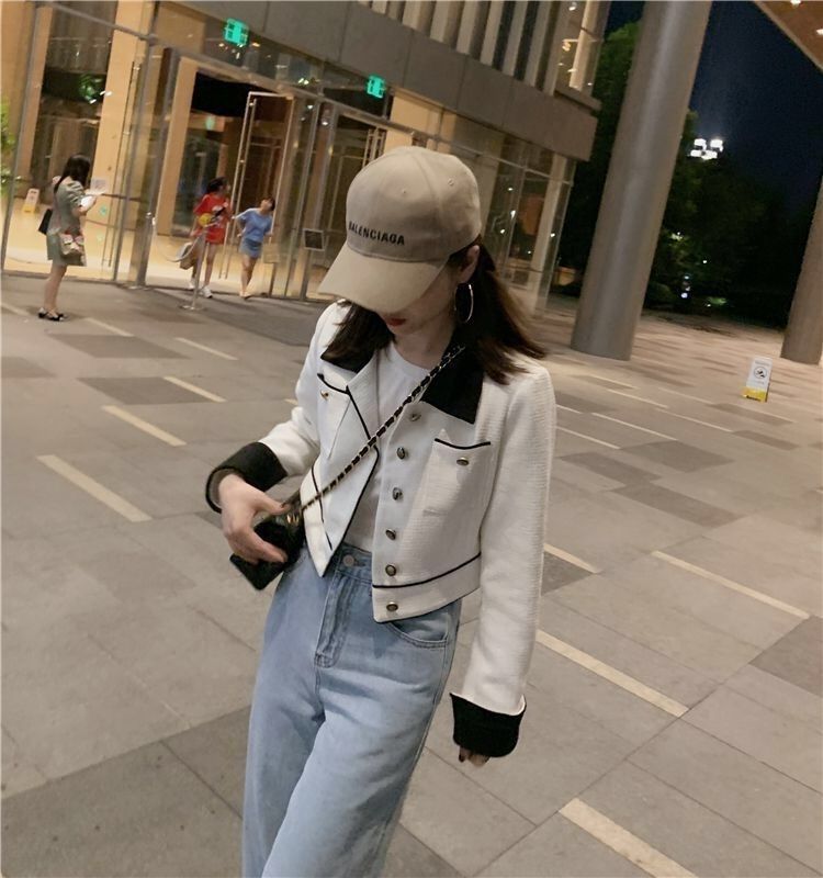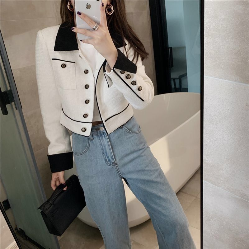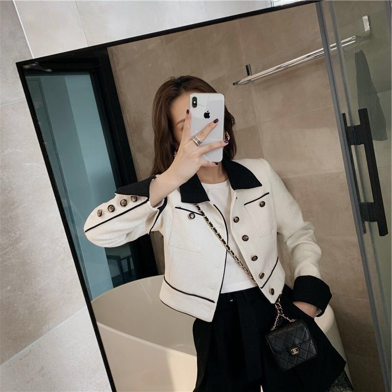 Hồng Kông Phong Cách Áo Khoác Nữ Mùa Xuân Mới Ngắn Hương Thơm Áo Khoác Phối Màu Đa Năng Ôm Dáng Nhỏ Đầm Nữ