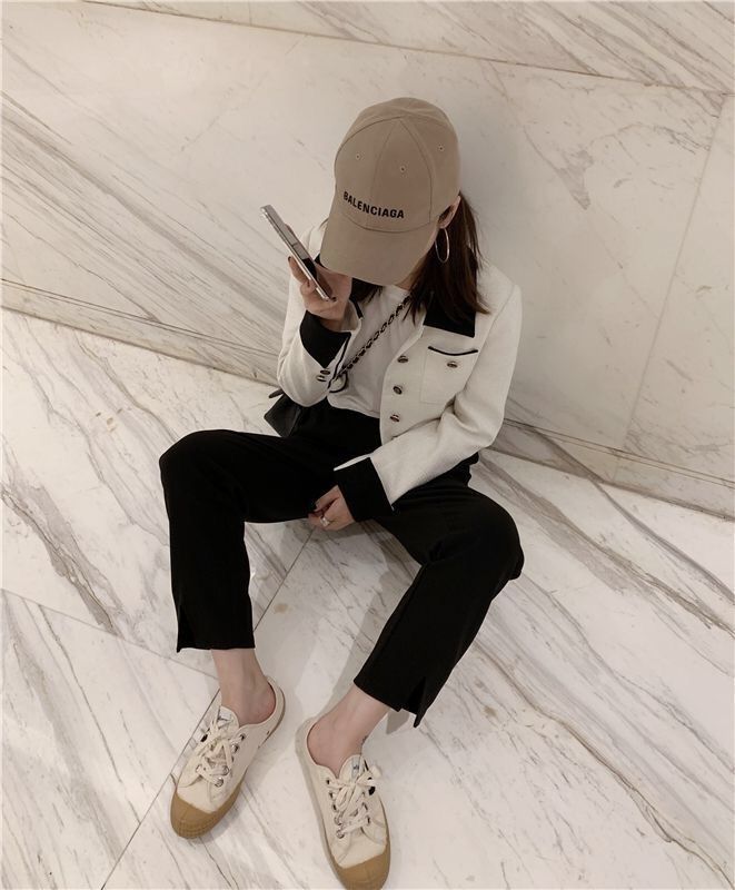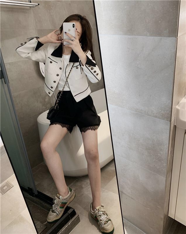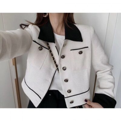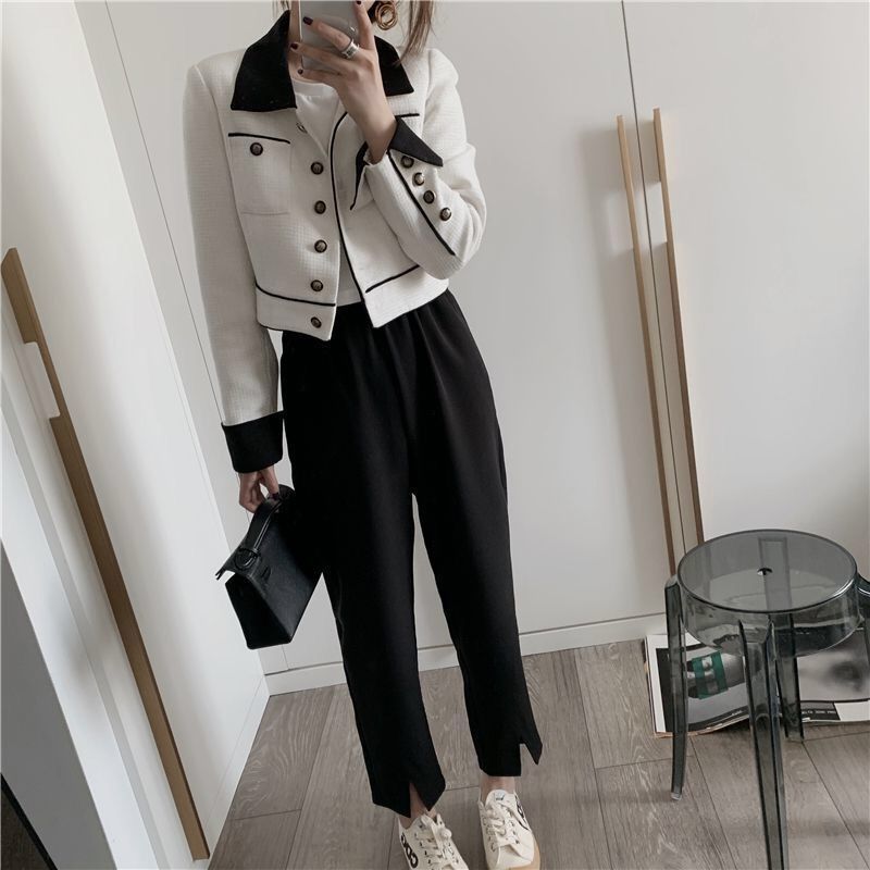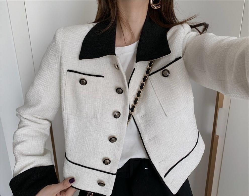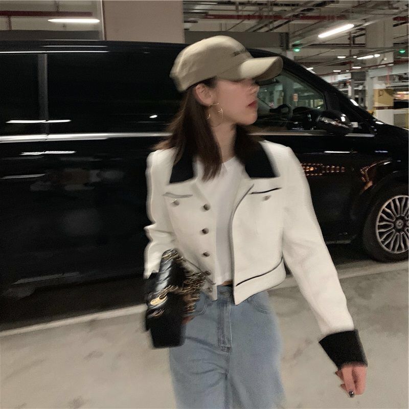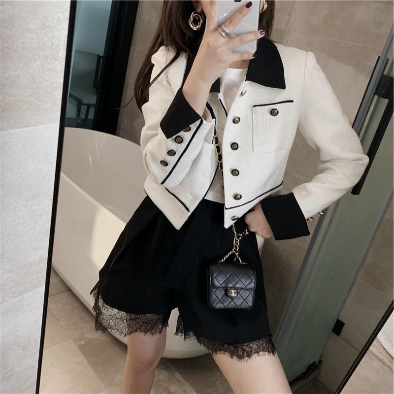Hồng Kông Phong Cách Áo Khoác Nữ Mùa Xuân Mới Ngắn Hương Thơm Áo Khoác Phối Màu Đa Năng Ôm Dáng Nhỏ Đầm Nữ