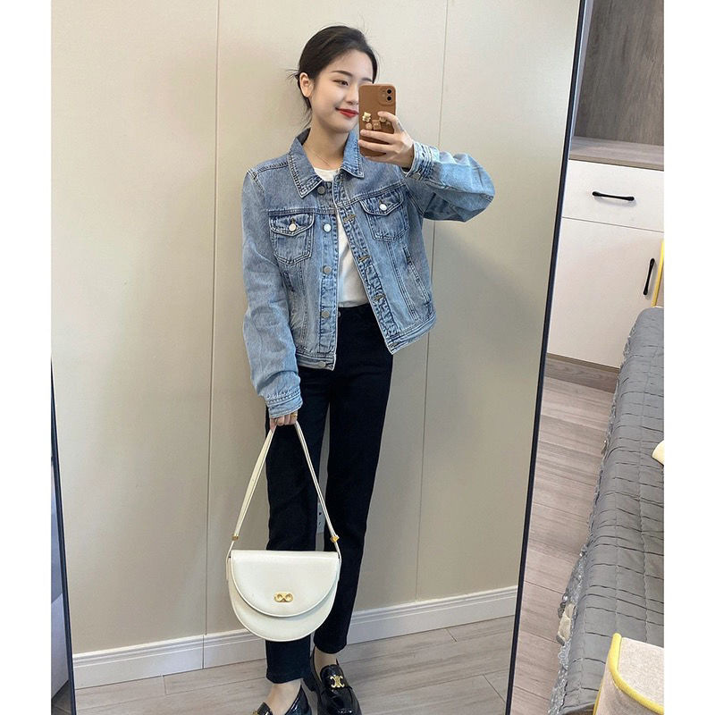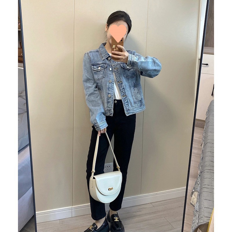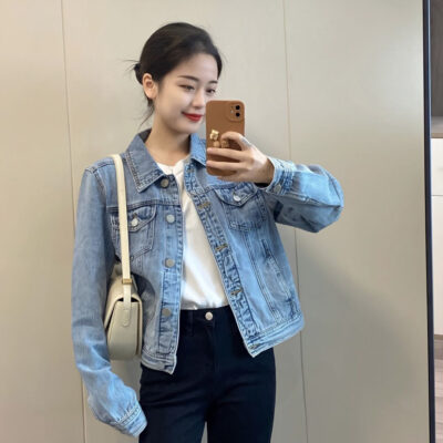 Hồng Kông Phong Cách Ngắn Màu Xanh Denim Áo Khoác Nữ Xuân Thu Áo Khoác Ngoài Tính Khí Retro Hàng Đầu Nhà Sản Xuất Bán Buôn