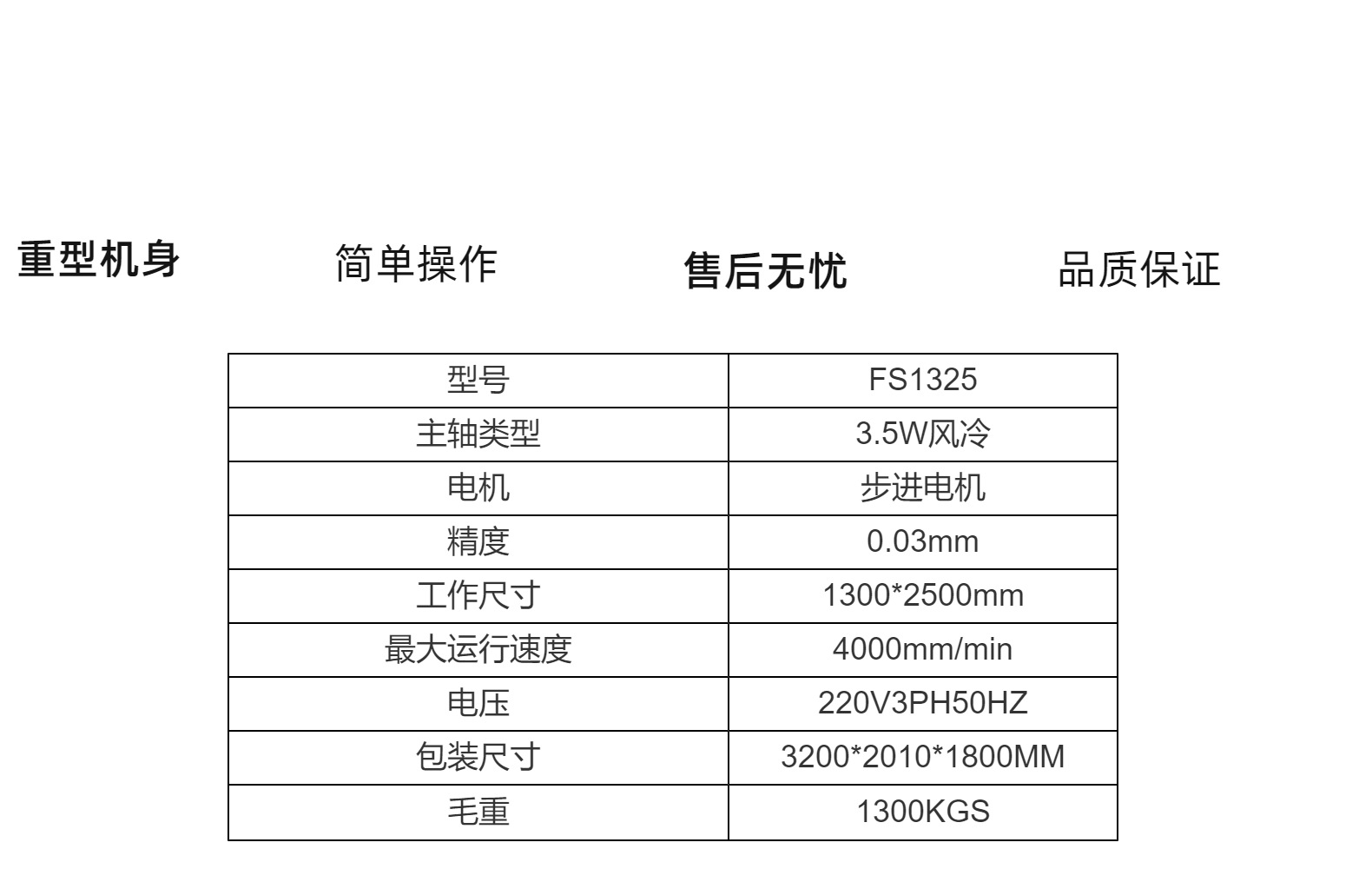 Hình thức làm việc: Hoàn toàn tự động Mã sản phẩm: 046 Nhãn hiệu: FORSUN Chiều rộng gia công tối đa: 1300 Loại sản phẩm: Mẫu mới: FS1325 Chiều dài gia công tối đa: 2500 Phạm vi ứng dụng: Khắc và cắt đồ nội thất Độ dày gia công tối đa: 100 Số đặt hàng: 202206 Điện áp định mức: 220V/380V Tùy chỉnh gia công: Có Kích thước: 1300*2500 Tốc độ nạp: 500 Có sẵn cho đường chéo -xuất khẩu?Nguồn: No Máy Trọng lượng: 1100 Loại: Máy Cắt Gỗ