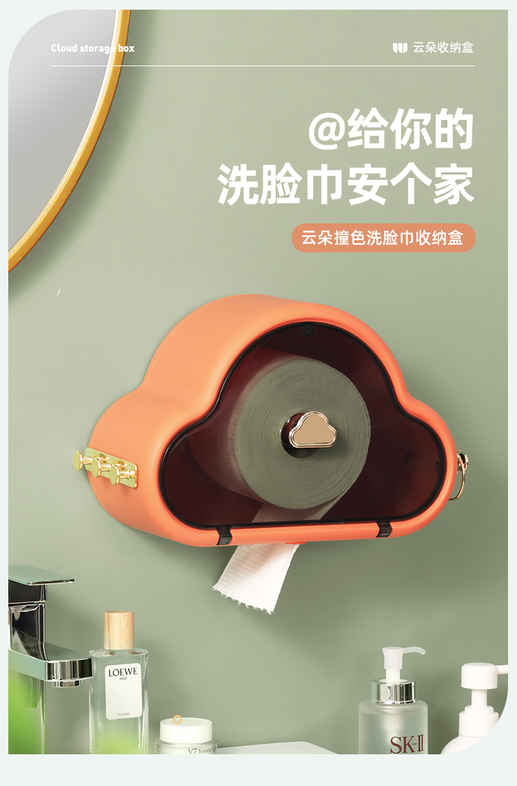 Hộp đựng khăn giấy vệ sinh sáng tạo treo tường đám mây không đục lỗ dùng một lần giá đựng khăn mặt cuộn hộp lưu trữ giấy
