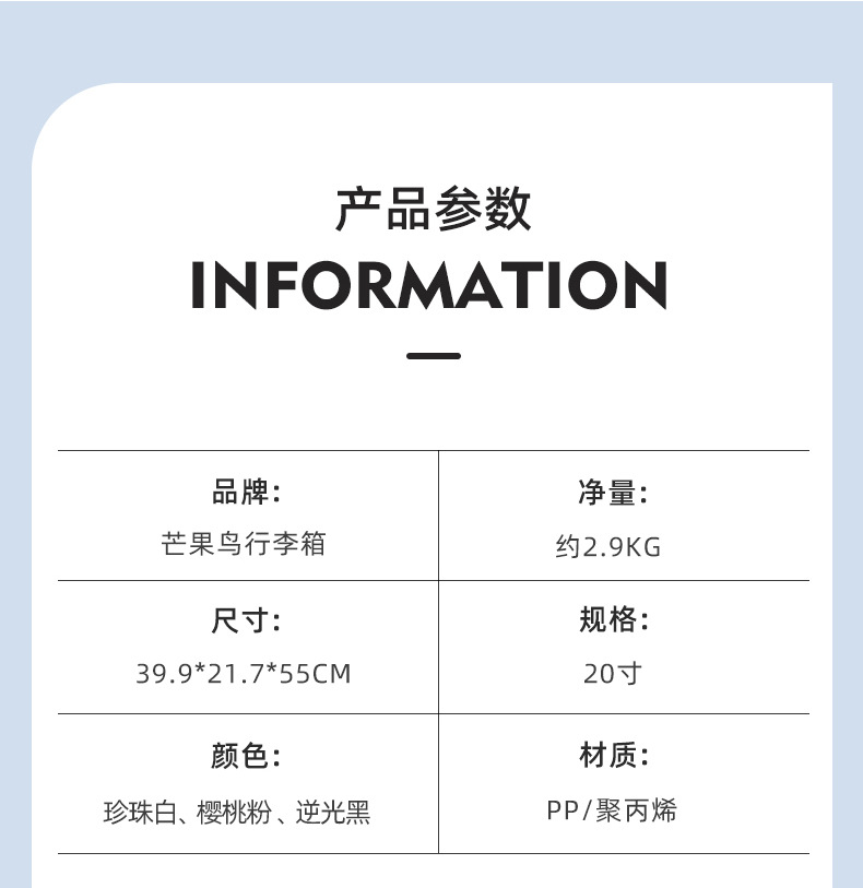 Hộp đựng xe đẩy chim xoài có giá trị cao dành cho nam mật khẩu nội trú kinh doanh 20 inch vali PP nữ sinh và bền