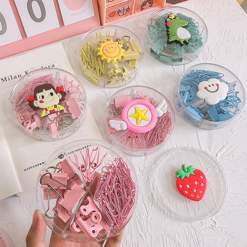 Hộp gim, kẹp giấy , văn phòng phẩm nhiều màu sắc, hình thù dễ thương.