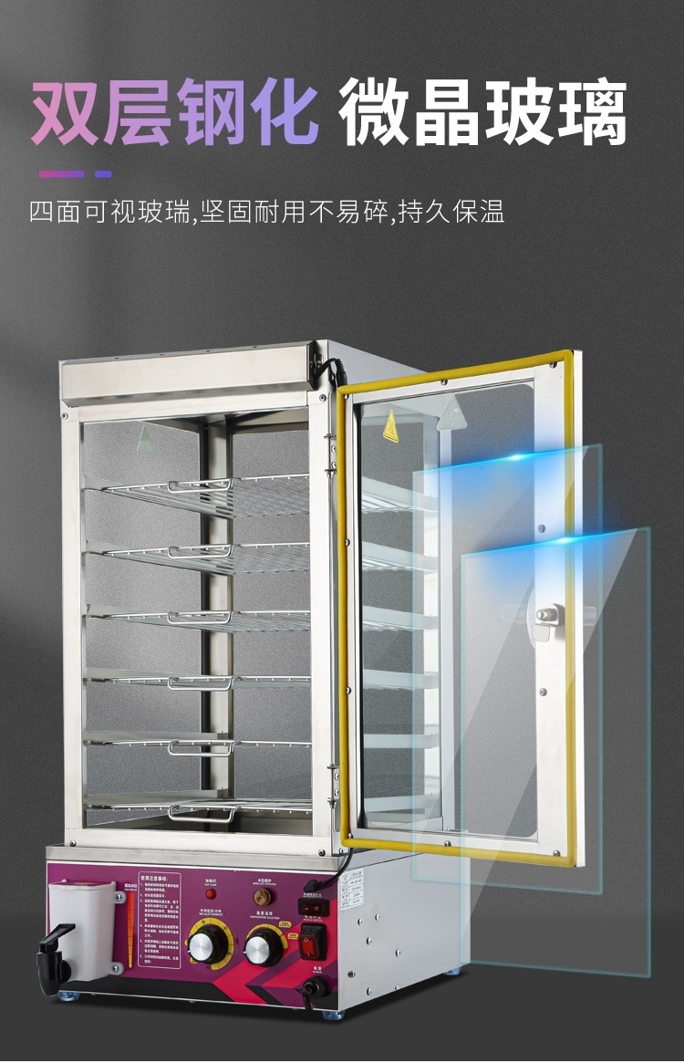 Hộp hơi thương mại điều lệ máy tính để bàn kính nhỏ thô và chín tủ cách nhiệt tủ bánh mì hấp tự động sử dụng kép