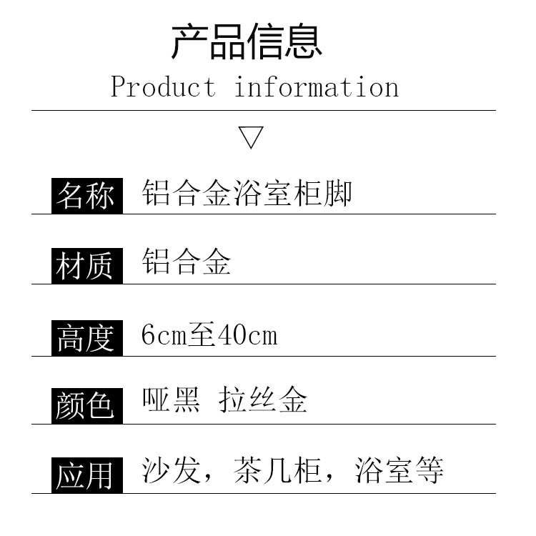 Hợp kim nhôm chân tủ phòng tắm có thể điều chỉnh chân bàn cà phê màu đen