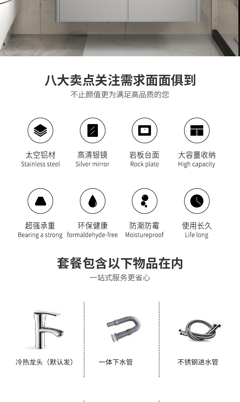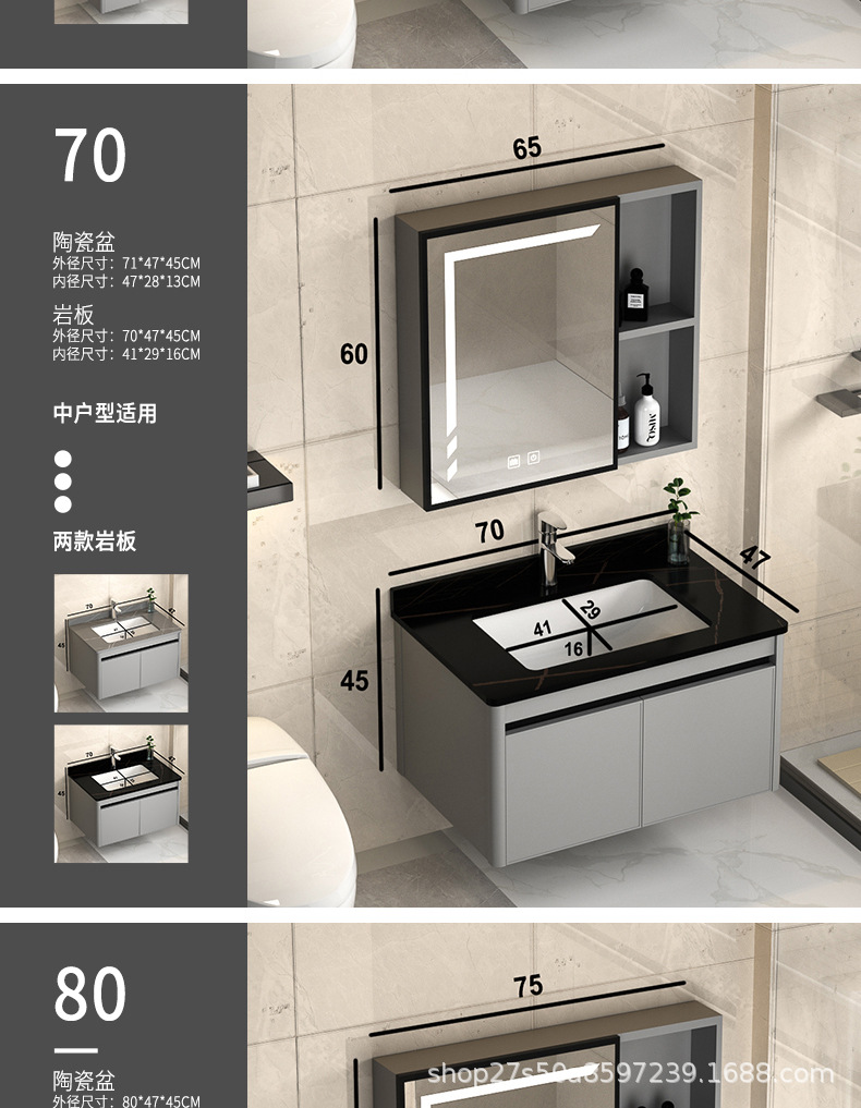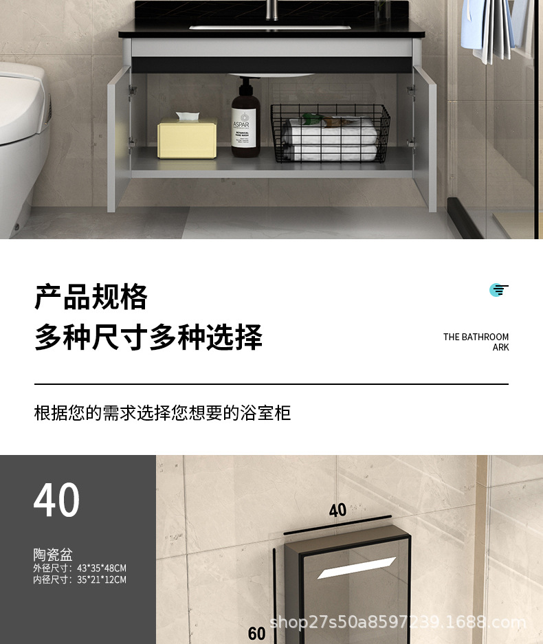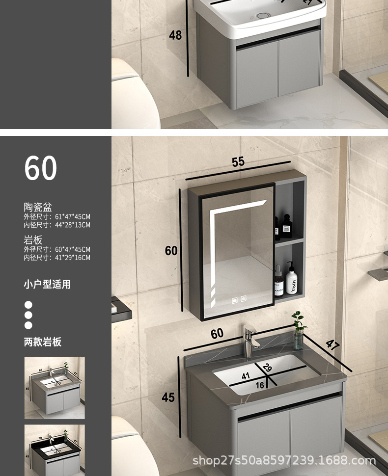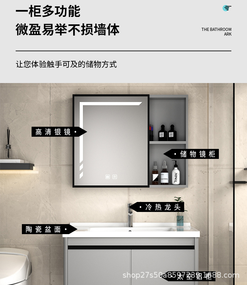 Hợp kim nhôm hiện đại tủ phòng tắm bằng đá phiến phòng tắm chậu rửa tủ kết hợp bồn rửa gốm tích hợp bồn rửa mặt