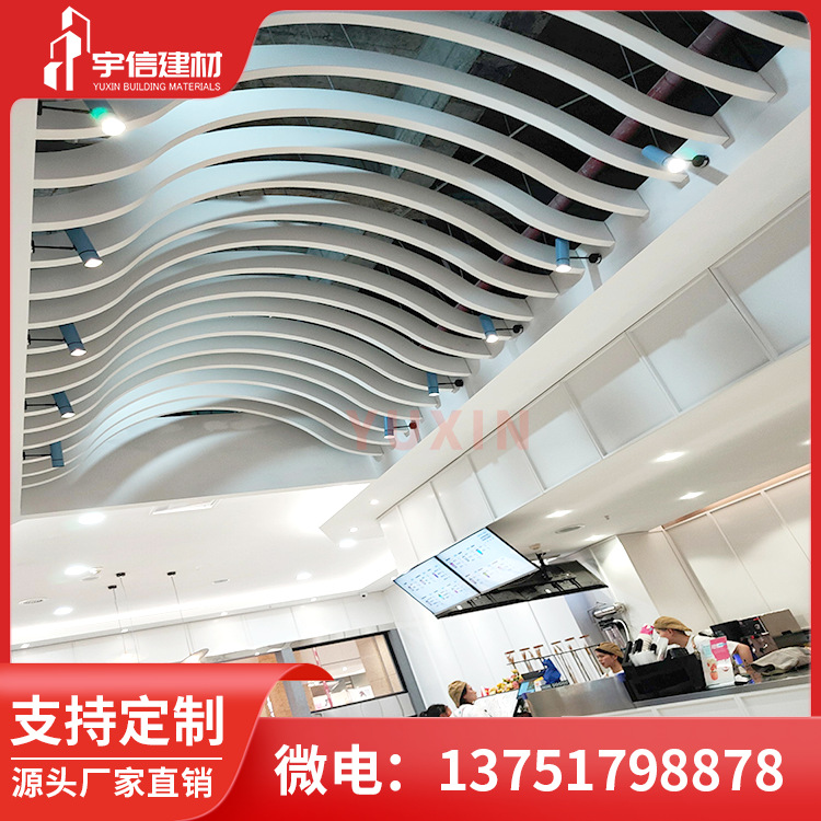 Hợp kim nhôm màu trắng tấm nhôm trang trí vân gỗ nhôm cong vuông vượt qua trần lưới tản nhiệt nhôm định hình tường rèm tấm sóng trần