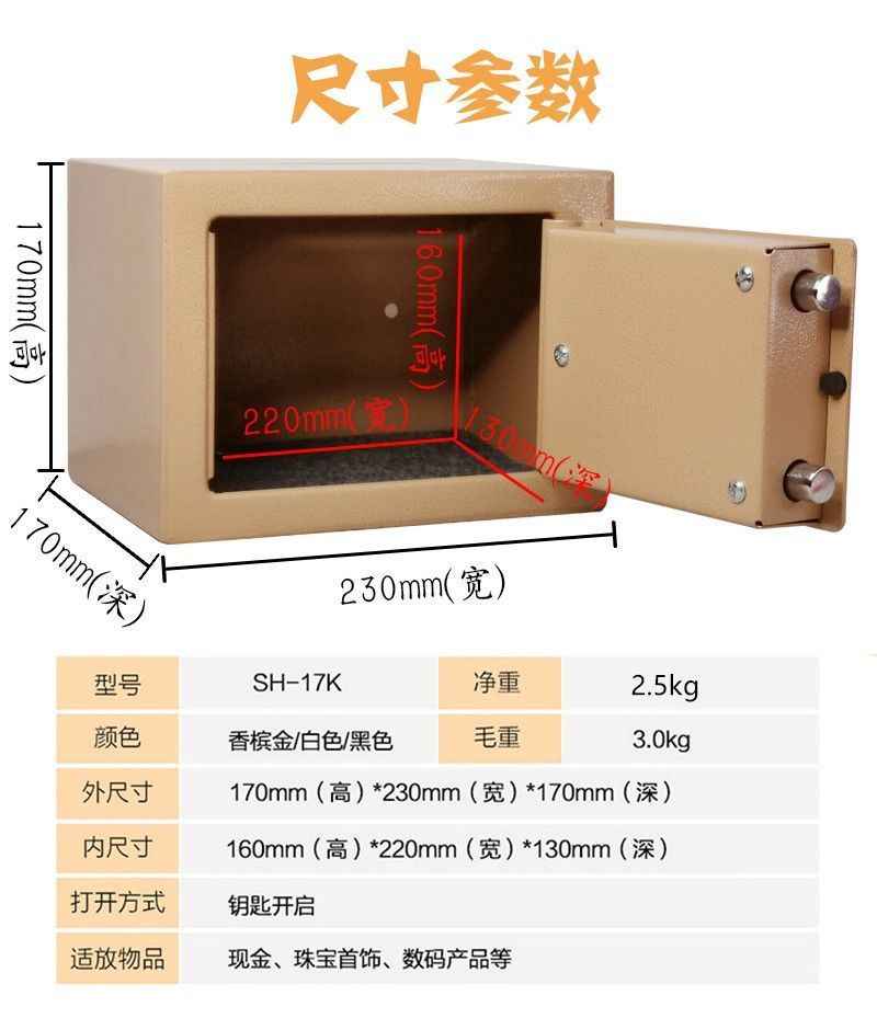 Sản phẩm nổi bật với các tính năng: Hộp nhỏ có khóa, két sắt cơ khí đơn giản, bảo hiểm cho người già cất giữ trang sức và tiền mặt tại nhà. Quý khách có nhu cầu mua Két sắt nhập khẩu vui lòng liên hệ với chúng tôi để được tư vấn hỗ trợ. Dịch vụ mua hàng Trung Quốc sẽ hỗ trợ quý khách mua hàng từ nhà cung cấp và giao tới tận tay quý khách hàng..