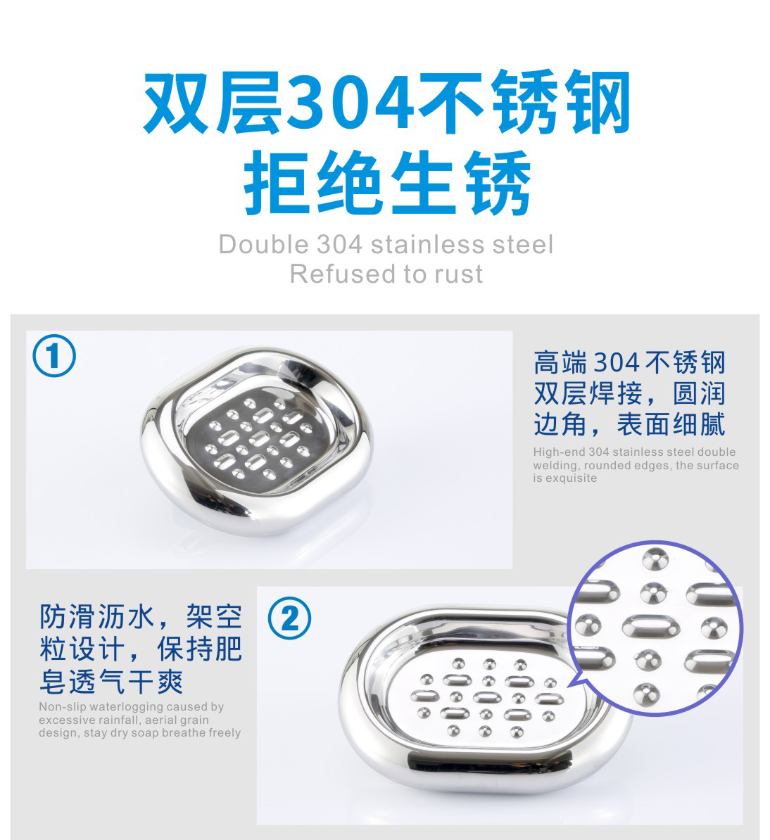 Hộp xà phòng hai lớp bằng thép không gỉ 304 Hộp xà phòng sáng tạo Hộp xà phòng sáng tạo Châu Âu Đồ dùng phòng tắm nhà vệ sinh Châu Âu