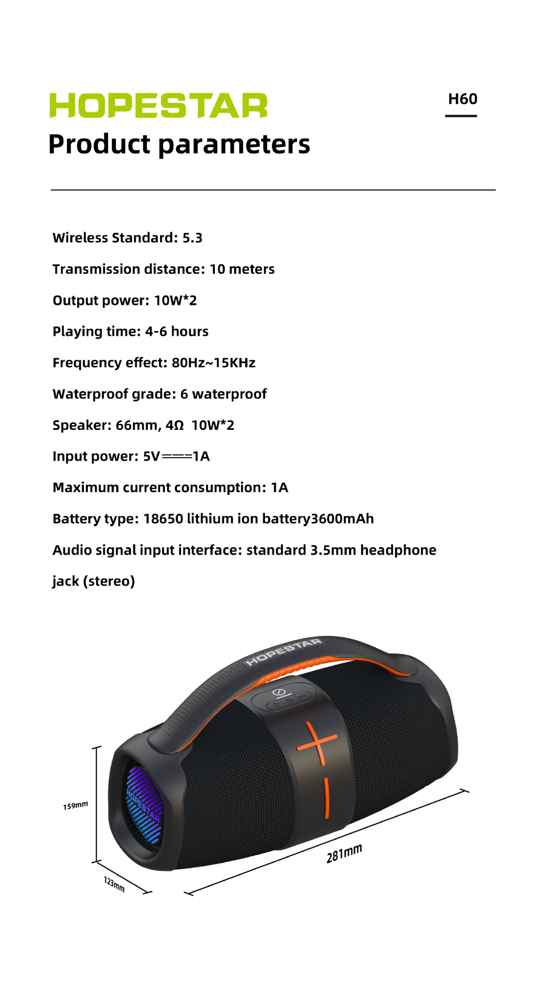 HOPESTAR-H60 Di Động 2023 Mới Loa Bluetooth Không Dây Cao Cấp Trận Trống Âm Lượng Lớn TF Di Động