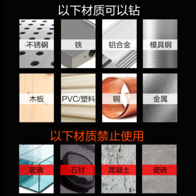 【注意事项】可钻各类钢材、铁、铝合金等金属和竹木、塑料等材质。