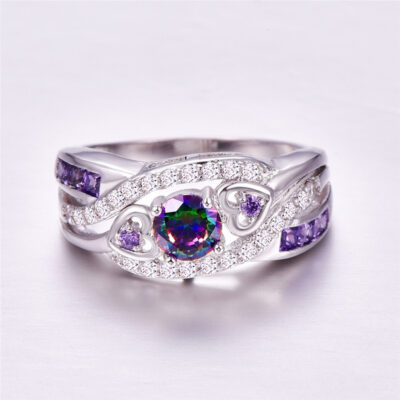 Huajie wish Nhẫn sapphire đá quý khảm cầu vồng bán chạy nhất Châu Âu và Hoa Kỳ Nhẫn nữ zirconia phong cách nóng bỏng xuyên biên giới