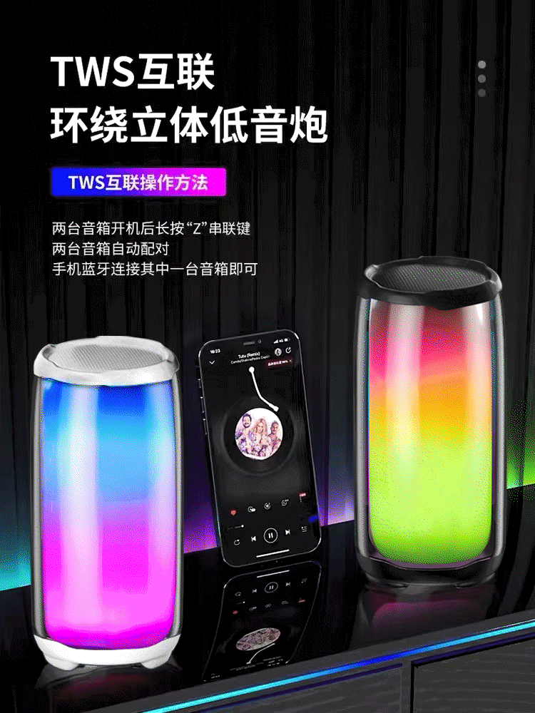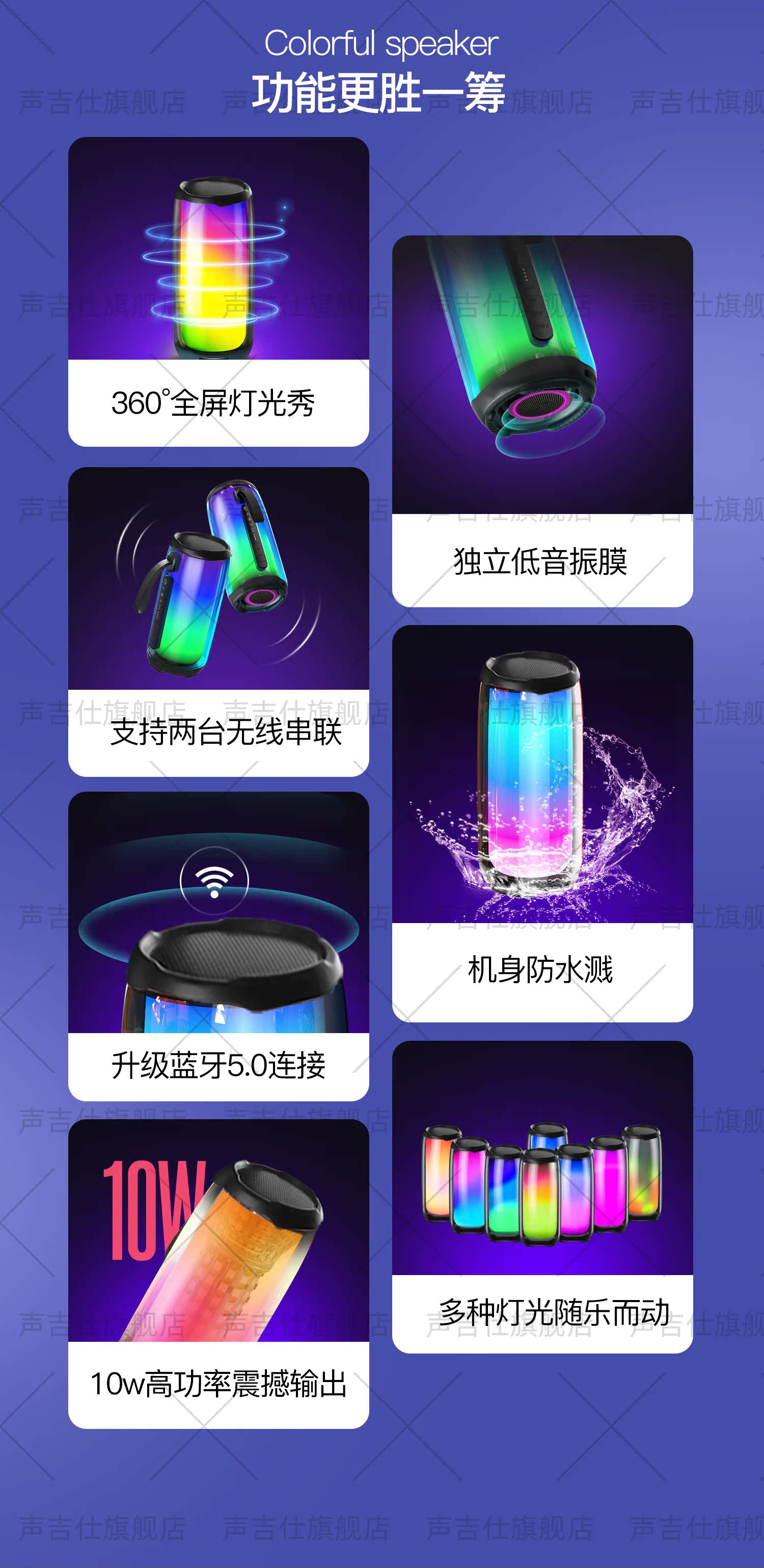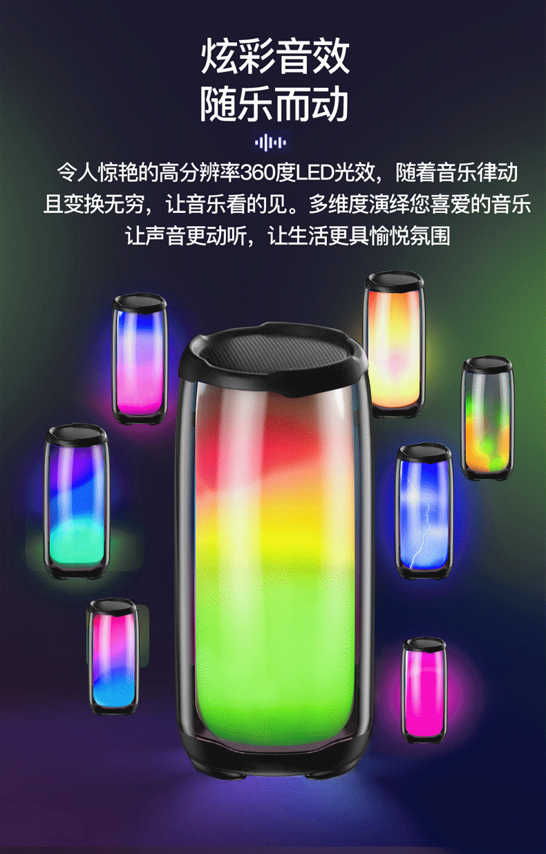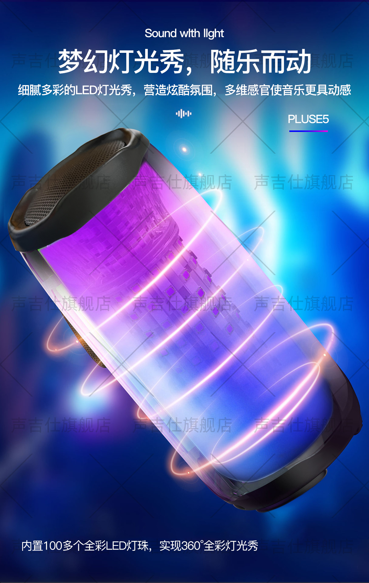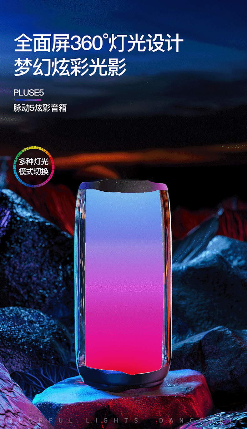Huaqiang North Âm thanh Bluetooth không dây Âm nhạc Pulsation PLUSE5 Loa siêu trầm Chiếu sáng đầy màu sắc Loa di động ngoài trời
