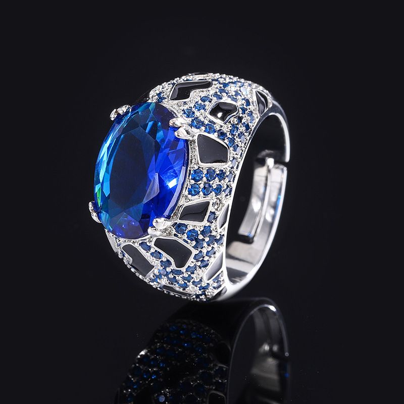Huayoumei Âu Mỹ Retro Tanzania Nhẫn Sapphire Micro Đính Kim Cương Màu Đá Quý Nhẫn Nữ Màu Xanh Hoàng Gia Nhẫn Zircon