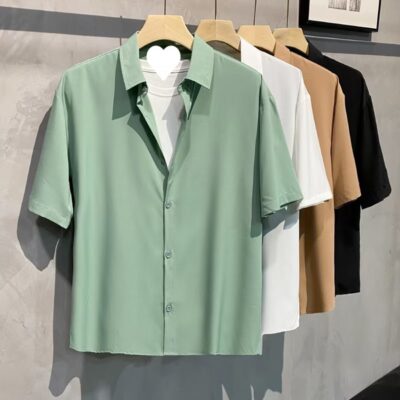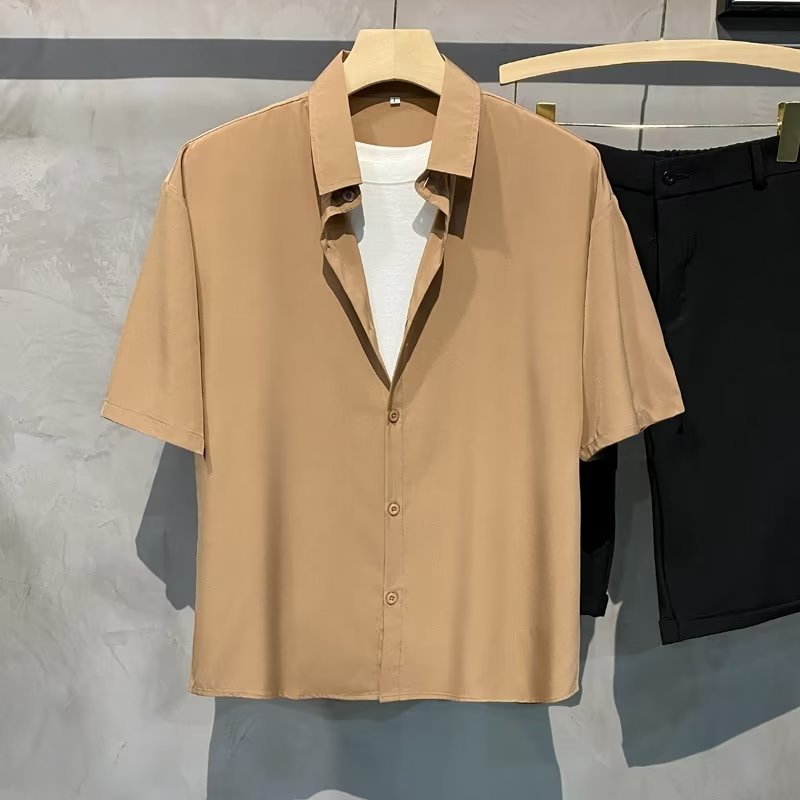 Ice Silk Co Giãn Liền Mạch Size Lớn Nam Công Sở Áo Sơ Mi Sọc Tay Ngắn Nổ Mùa Hè Kinh Doanh Ánh Sáng Không Sắt Sự Nghiệp