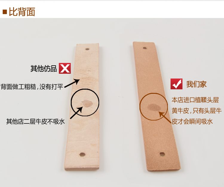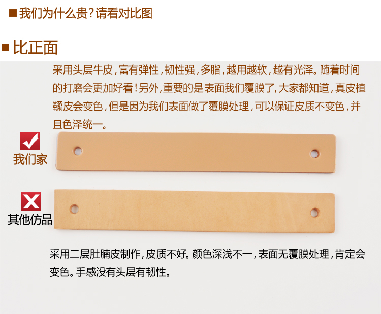 本款采用进口头层牛皮制作(也叫植鞣皮),亲们可以到处鉴定,保证原材料为头层牛皮!