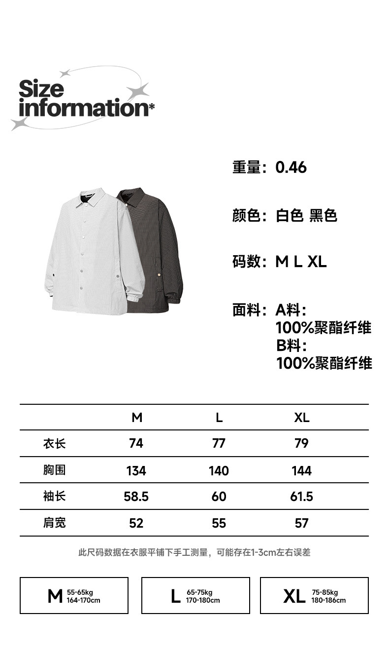 Hoa văn: Lưới Nguồn Loại: Vật liệu chấm Chức năng: Khác Loại sản phẩm: Áo khoác Màu sắc: Đen/Trắng/Trắng Nội dung vải chính: 100 Hàng tồn kho: Không Báo cáo kiểm tra chất lượng: Không Phù hợp với đối tượng: Thanh niên Kích thước: M/L/ XL/XL Phiên bản: Dáng rộng Loại: Thời trang trẻ trung (18-24 tuổi) Loại cổ áo: Ve áo Độ dày: Thông thường Thương hiệu: lạm phát Mã sản phẩm: 5095W22 Tên vải: 100% Polyester Hoàn cảnh áp dụng: Túi đeo chéo thông thường: Khóa một hàng Thành phần vải chính: Sợi polyester (Polyester) Chiều dài: Thông thường Giới tính áp dụng: Nam Độ tuổi áp dụng: Người lớn Năm/Mùa niêm yết: Mùa xuân 2023 Có mũ trùm đầu: Không có mũ trùm đầu Phong cách mặc: Áo khoác ngoài Mùa thích hợp: Mùa thu Chiều dài tay áo: Dài tay Chi tiết kiểu dáng: Kẻ sọc Phong cách: Thời trang đường phố Phạm vi lỗi: 2cm Nguồn thiết kế ban đầu: Có Tay nghề: Không