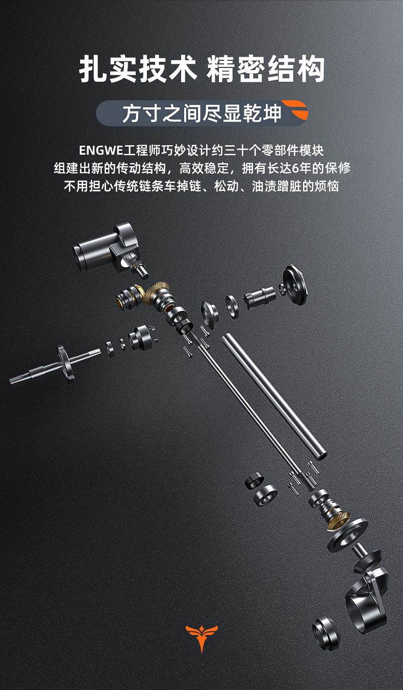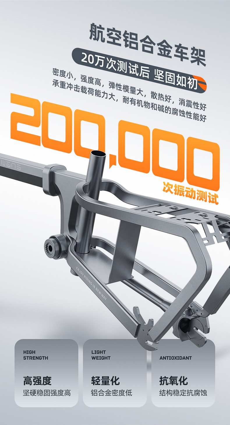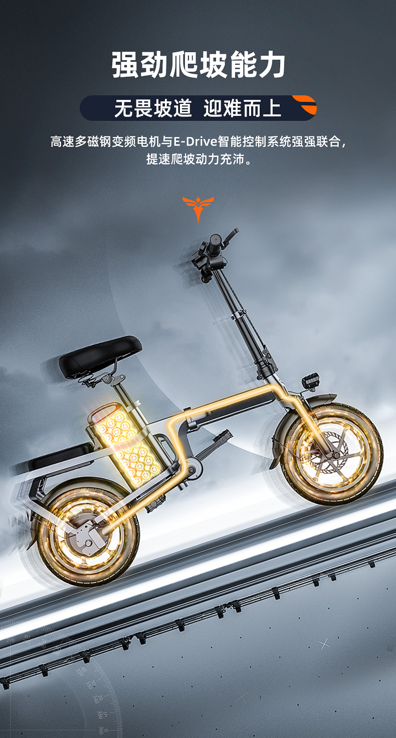 (2)续航里程提高40%、能效比提升至92%、符合亚洲98%以上场景等未注明的页面数据均为ENGWE试验室测试所得,按照50KG载重,平坦路面匀速测得。实际受载重、路况、风速、温度、速度、湿度、个体等诸多因素影响,页面所示测试数据仅为参考,不作为定性依据。