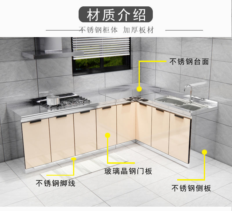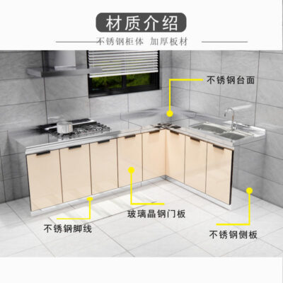 Inox tổng thể tủ bếp đơn giản tủ bếp tích hợp hộ gia đình nông thôn kết hợp tủ bảo quản bát gas