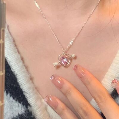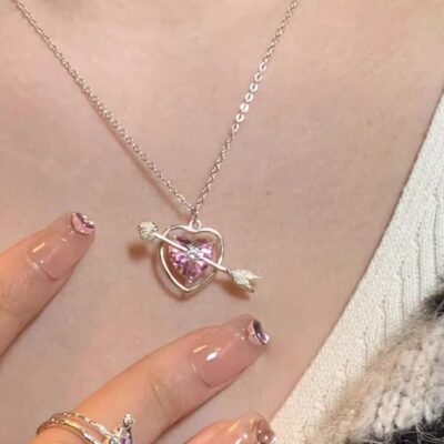 Ins ban đầu màu hồng tình yêu đá quý đá xuyên vòng cổ trái tim ánh sáng nữ sang trọng thích hợp mặt dây chuyền tính khí đơn giản dây chuyền xương đòn