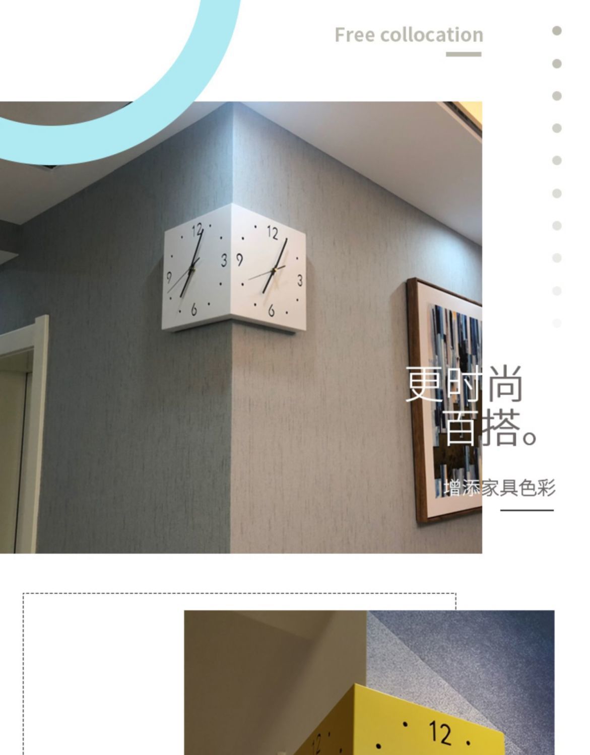 Ins đồng hồ góc gió 2 mặt đồng hồ treo tường phòng khách sáng tạo đơn giản hiện đại đồng hồ treo tường 2 mặt không đục lỗ thời trang đồng hồ góc mặt trời